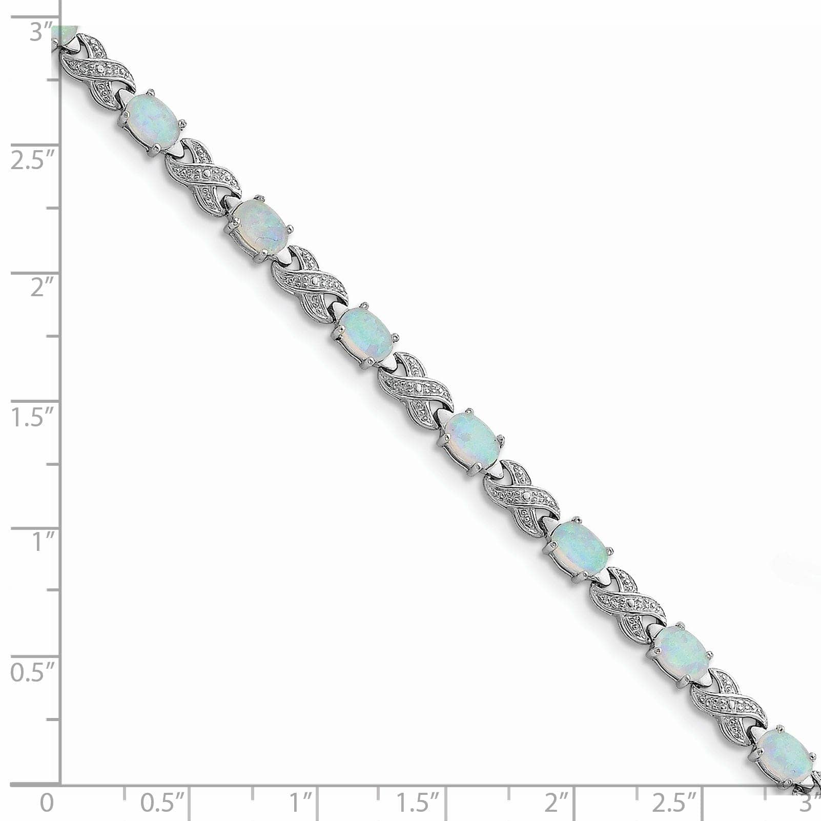 Elevate your style with this stunning Sterling Silver Polished Finish Rhodium Plated Diamond Cut 7-inch Created Opal and Illusion Bracelet. This exquisite piece features a mesmerizing created opal stone set in a polished sterling silver frame with a rhodium plated finish.