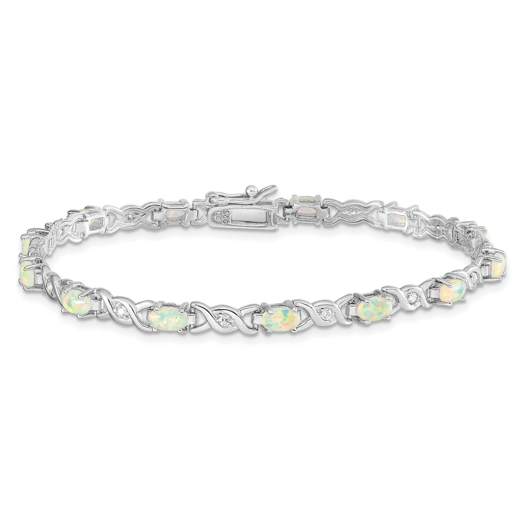 Introducing our stunning Silver White Created Opal and C.Z Bracelet, a true statement piece that is sure to turn heads. Crafted from high-quality sterling silver with a polished finish and rhodium plating, this 7-inch bracelet is both elegant and timeless.