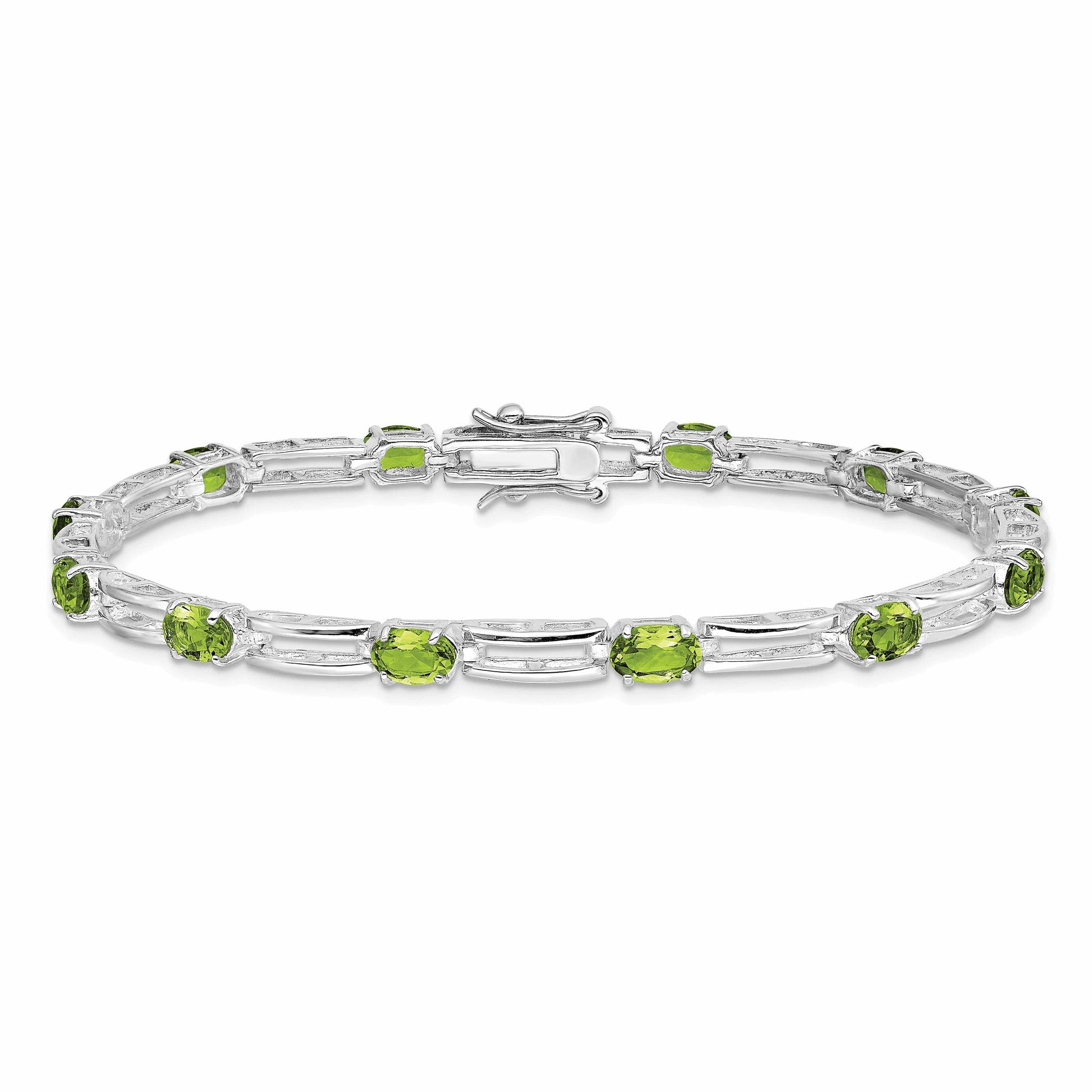 Elevate your jewelry collection with our stunning Silver Oval Peridot Gemstone Diamond Bracelet. This exquisite bracelet features a sleek design made of Sterling Silver with a Polished Rhodium Plated Finish, adding a touch of luxury to any outfit.
