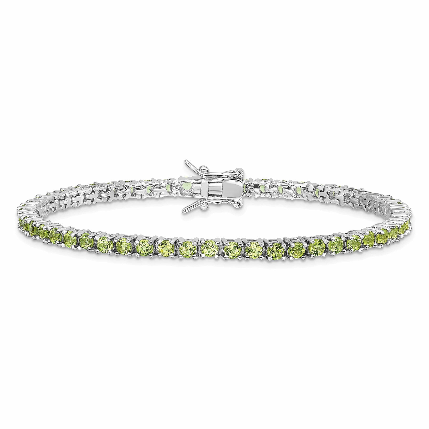 Step up your accessory game with this stunning Sterling Silver Polished Peridot Gemstone Bracelet. Crafted with precision and attention to detail, this bracelet features a rhodium plated finish that adds a touch of luxury and sophistication.