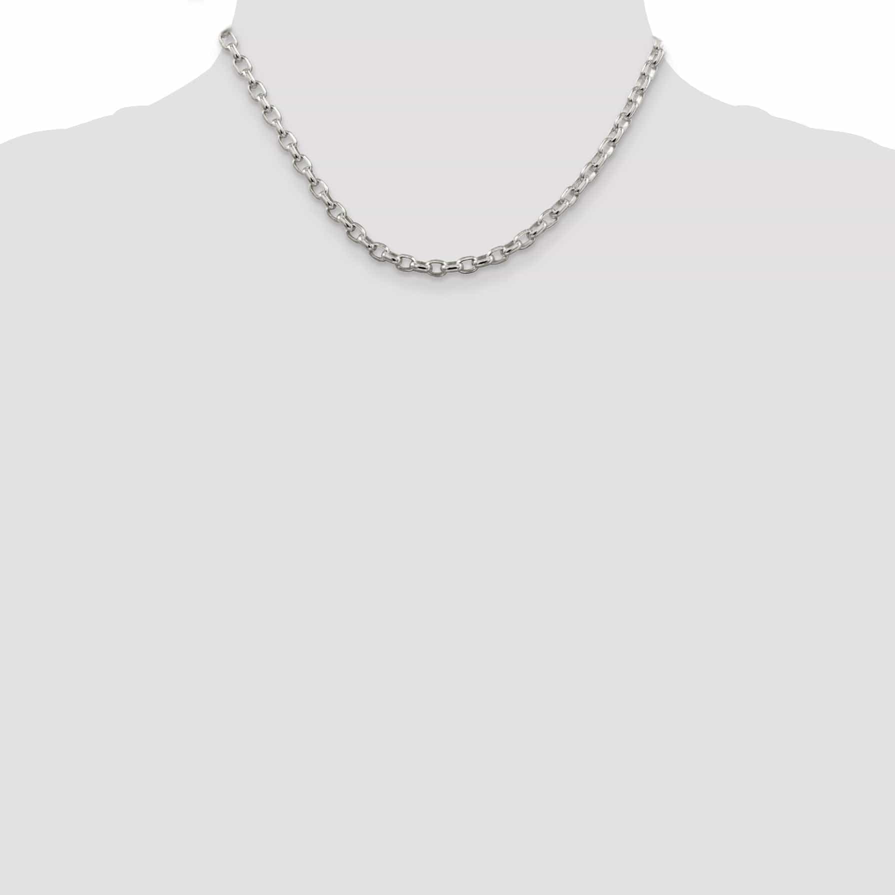 Silver Polish 4.40-mm Fancy Oval Rolo Necklace