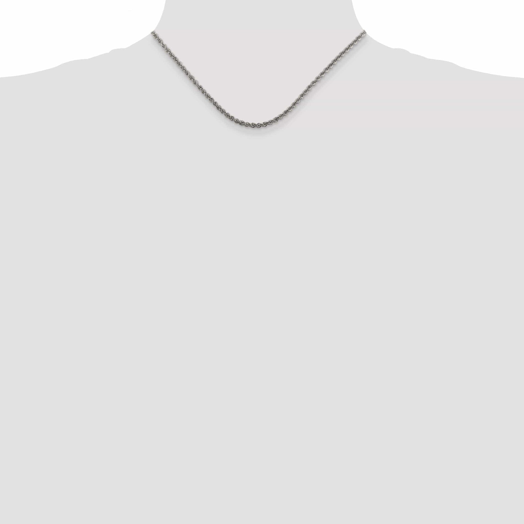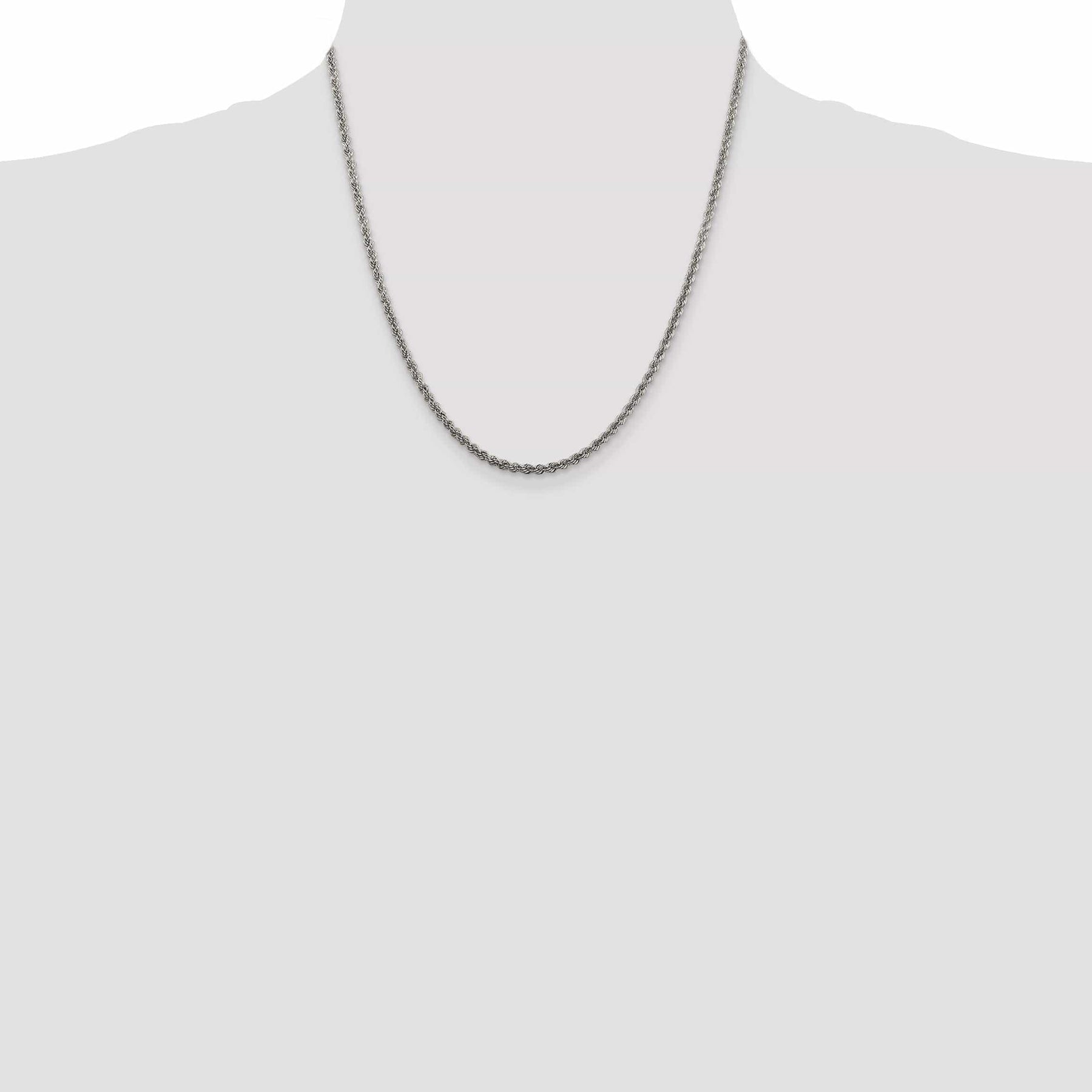Measuring at 2.50-mm in width, this solid rope chain is perfect for wearing on its own or for layering with other chains and necklaces. The lobster clasp closure ensures a secure fit, so you can wear this chain with confidence all day long.