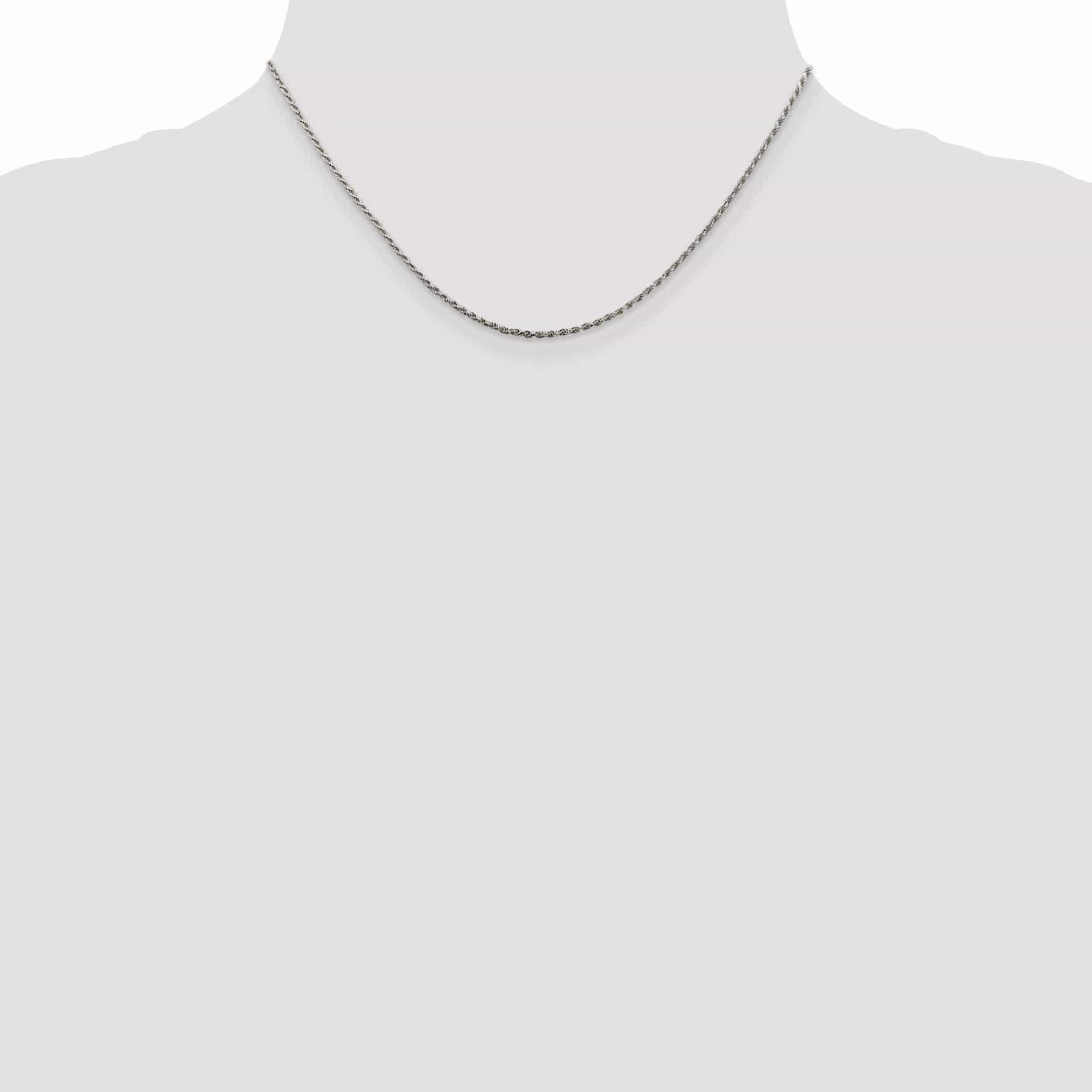 This Silver Polished D.C 1.50-mm Solid Rope Chain is a classic piece that will never go out of style. Perfect for both men and women, this chain makes a perfect gift for a loved one or a great addition to your own jewelry collection. Add a touch of sophistication to any outfit with this beautiful rope chain.