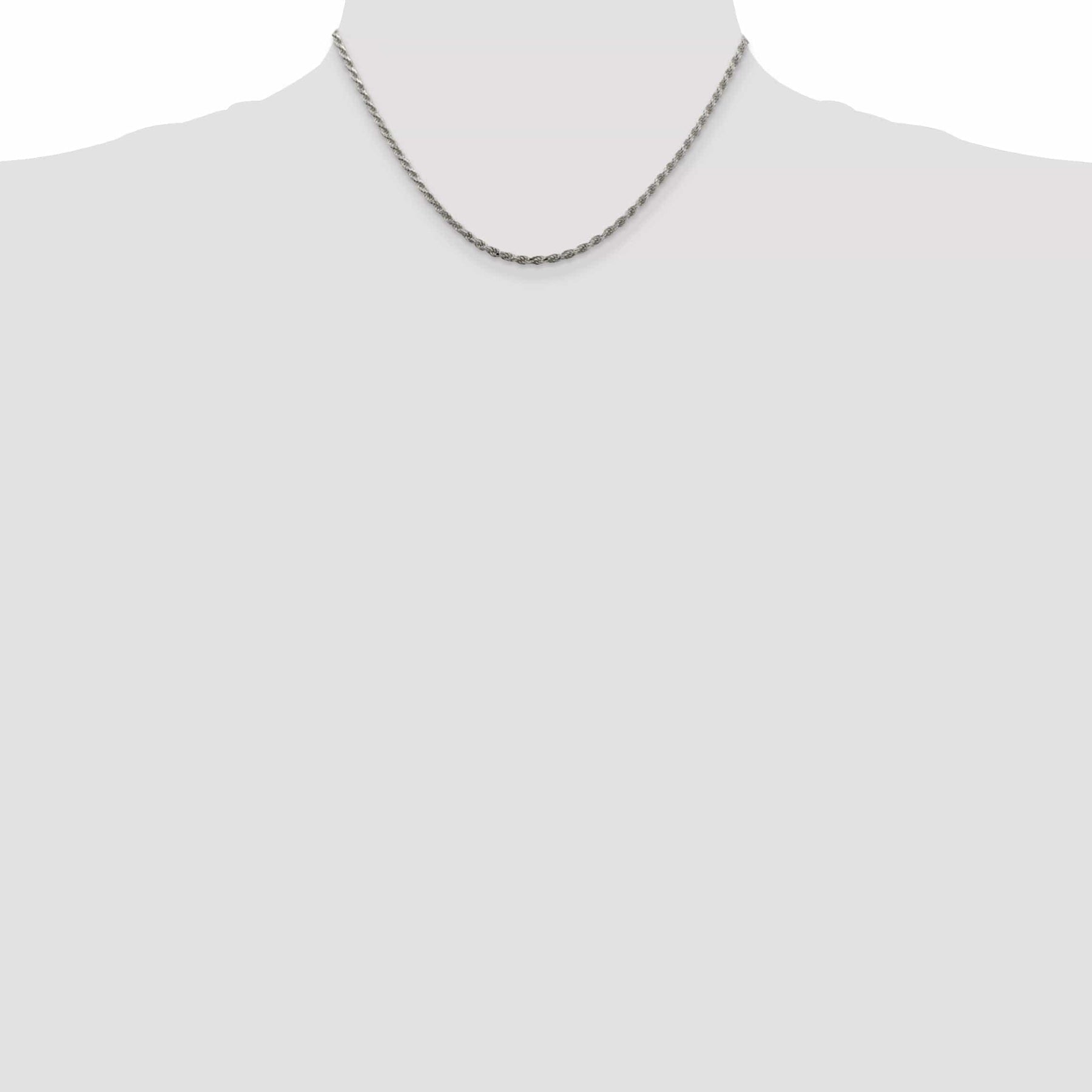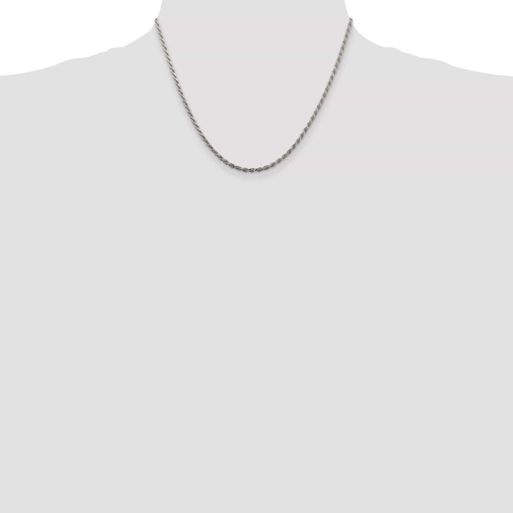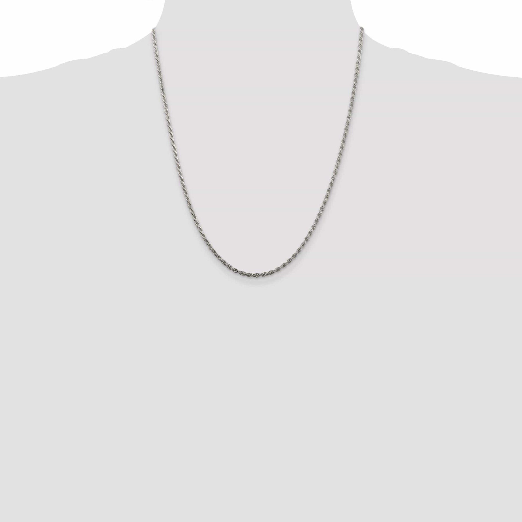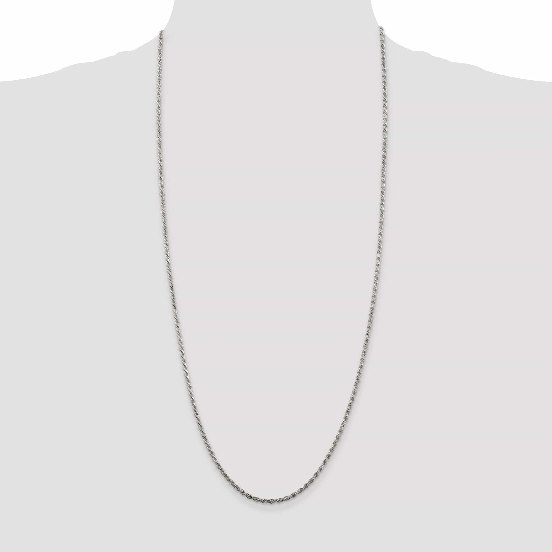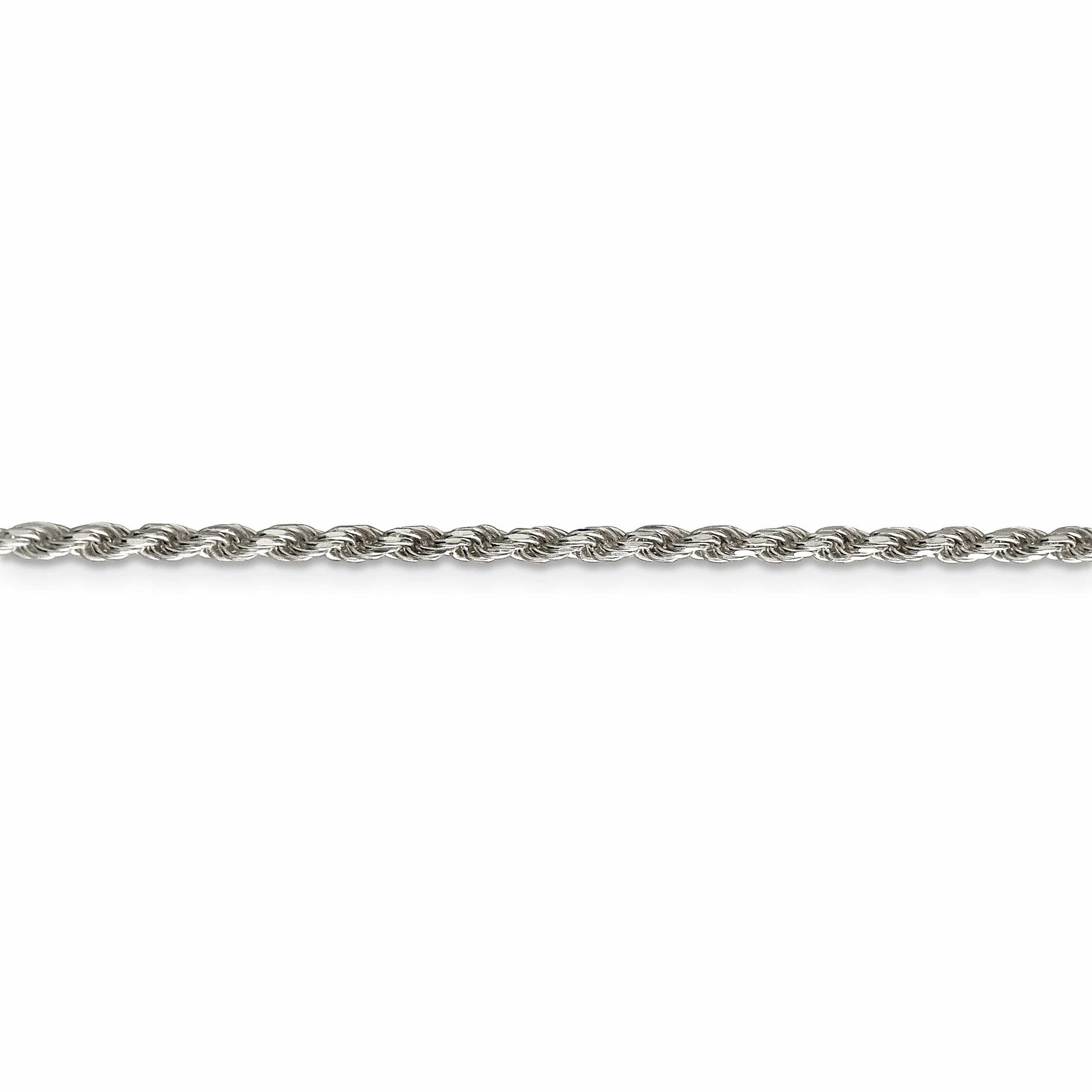Crafted from high-quality sterling silver, this solid rope chain features a stunning diamond cut finish that catches the light beautifully. The 2.25-mm thickness gives it a substantial and luxurious feel, making it a standout piece in your jewelry collection.