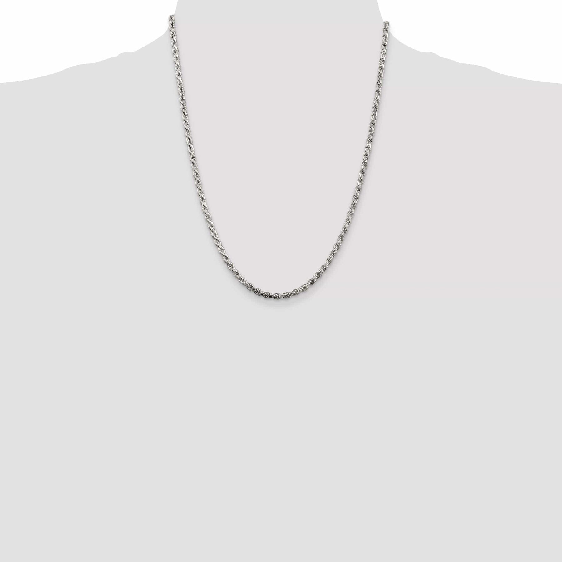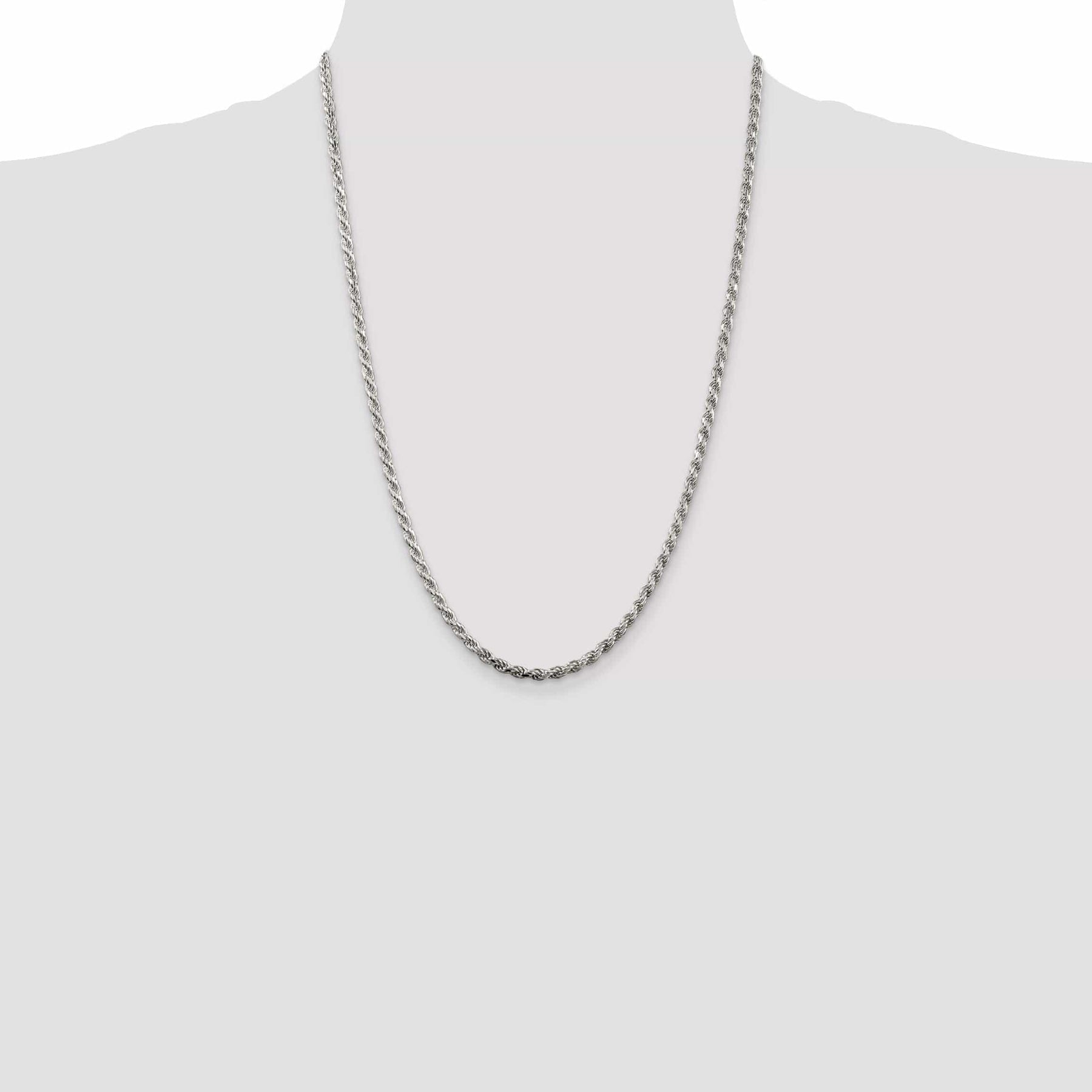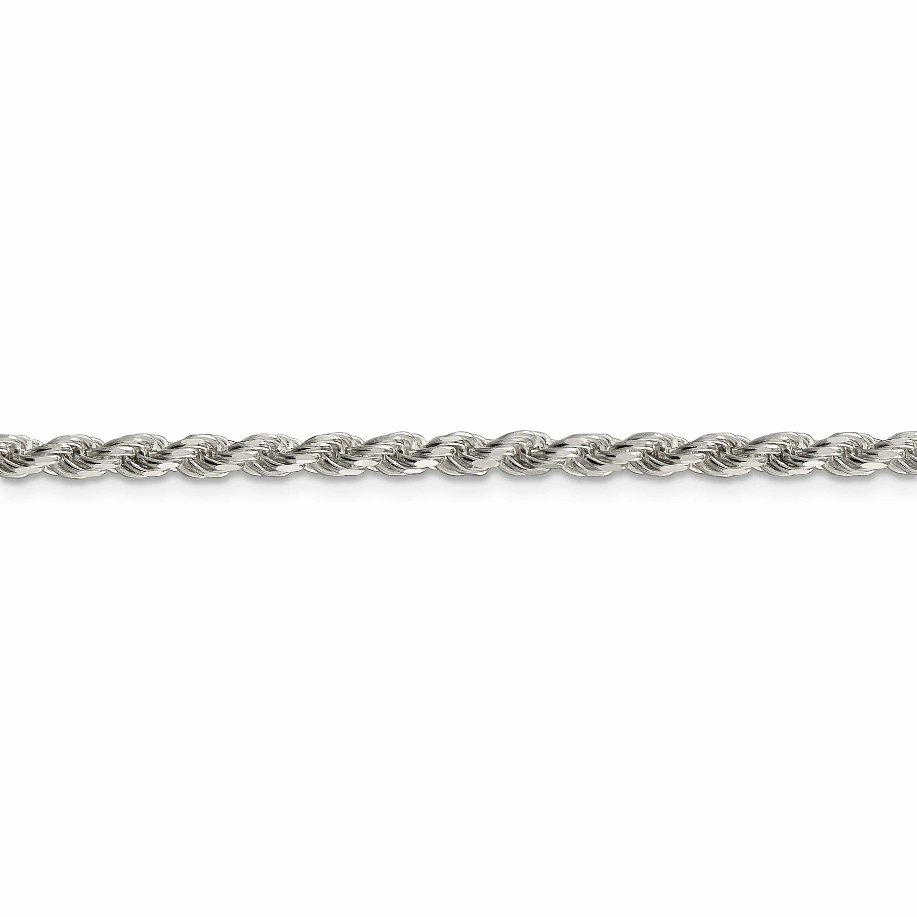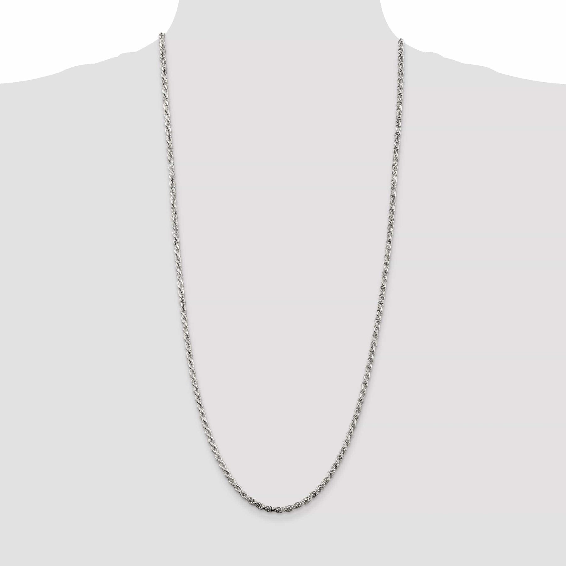 Crafted from high-quality sterling silver, this rope chain boasts a sturdy construction that is built to last. The 3.00-mm thickness provides a substantial look and feel, making it the perfect accessory for both casual and formal occasions.