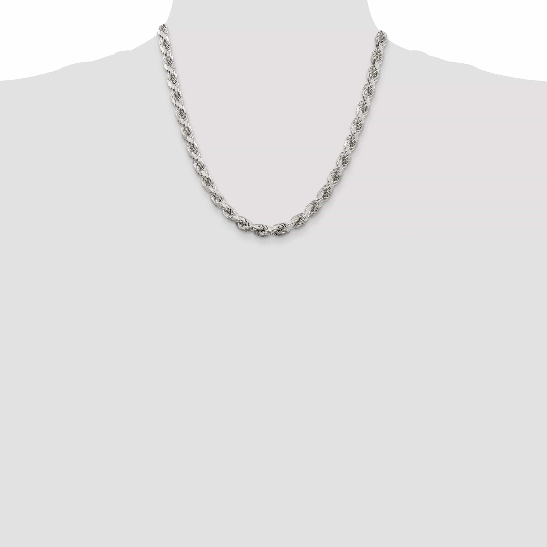 Introducing our stunning Sterling Silver Polished Diamond Cut Finish 8 Sides 7.00-mm Rope Chain with a secure Lobster Clasp. This elegant and sophisticated piece is crafted from high-quality sterling silver, ensuring durability and longevity. The intricate diamond cut finish adds a touch of sparkle and shine, making this chain a perfect accessory for any outfit.