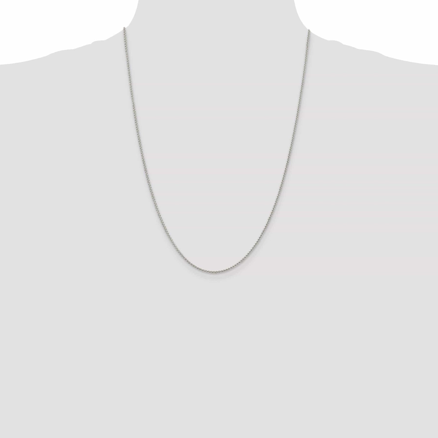 The Silver Polished 1.50-mm Solid Round Spiga Chain is a stunning piece of jewelry crafted from sterling silver. With a polished finish, this chain shines beautifully in the light, adding a touch of elegance to any outfit.