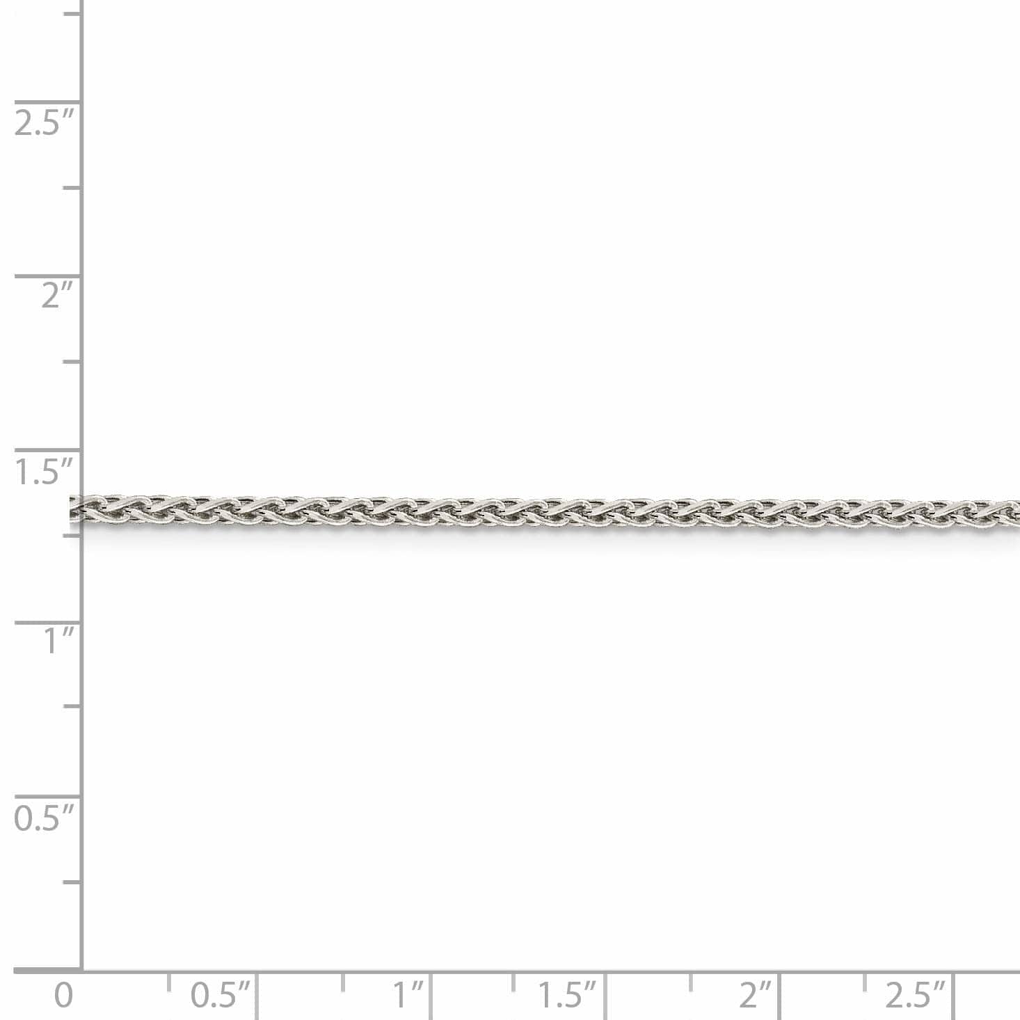 Step up your jewelry game with this stunning Sterling Silver Polished D.C 2.00-mm Solid Spiga Chain. Crafted from high-quality sterling silver, this chain features a diamond cut finish that adds a touch of sparkle to your look. The 2.00-mm width of the chain gives it a substantial and luxurious feel, perfect for everyday wear or special occasions.