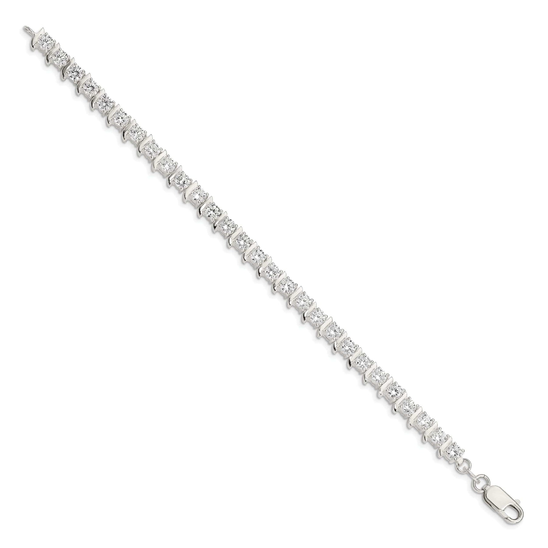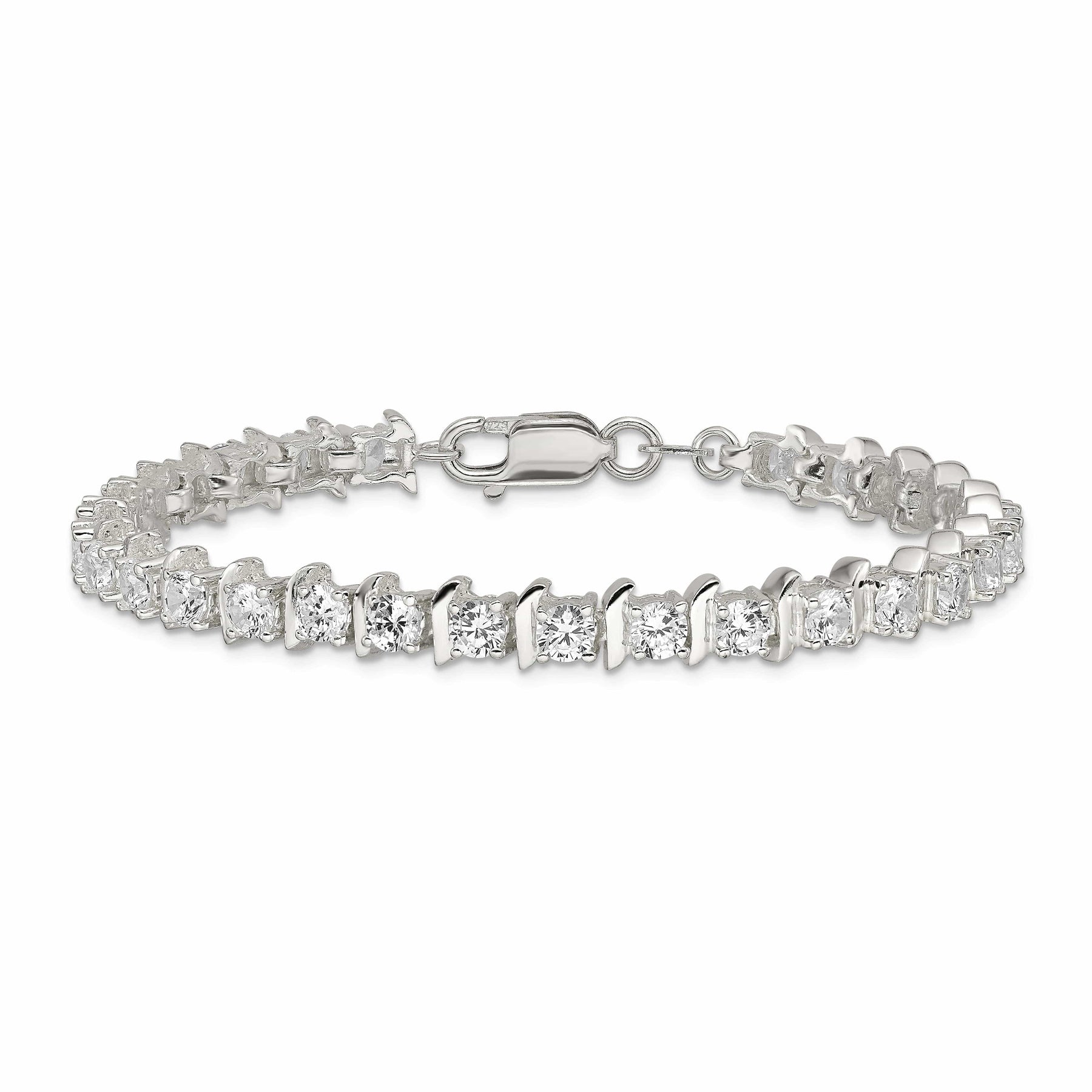 Elevate your jewelry collection with this stunning piece - the Sterling Silver Polished Finish Open Back Cubic Zirconia Fancy Polished Bracelet with Lobster Clasp. Crafted with high-quality sterling silver, this bracelet features a polished finish that adds a touch of elegance to any outfit.