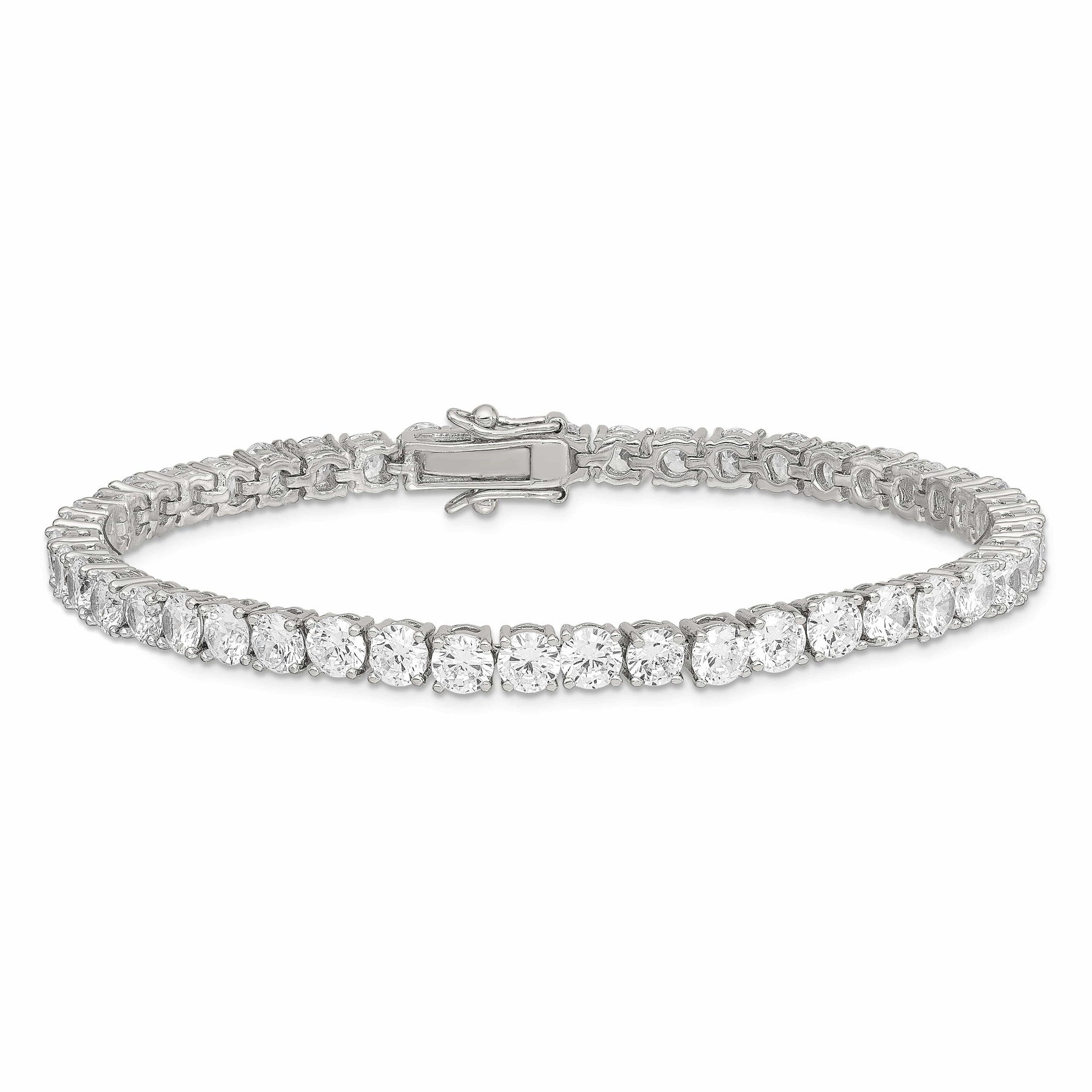 Add a touch of sophistication and sparkle to your jewelry collection with our Sterling Silver Polished Finish Cubic Zirconia Bracelet.