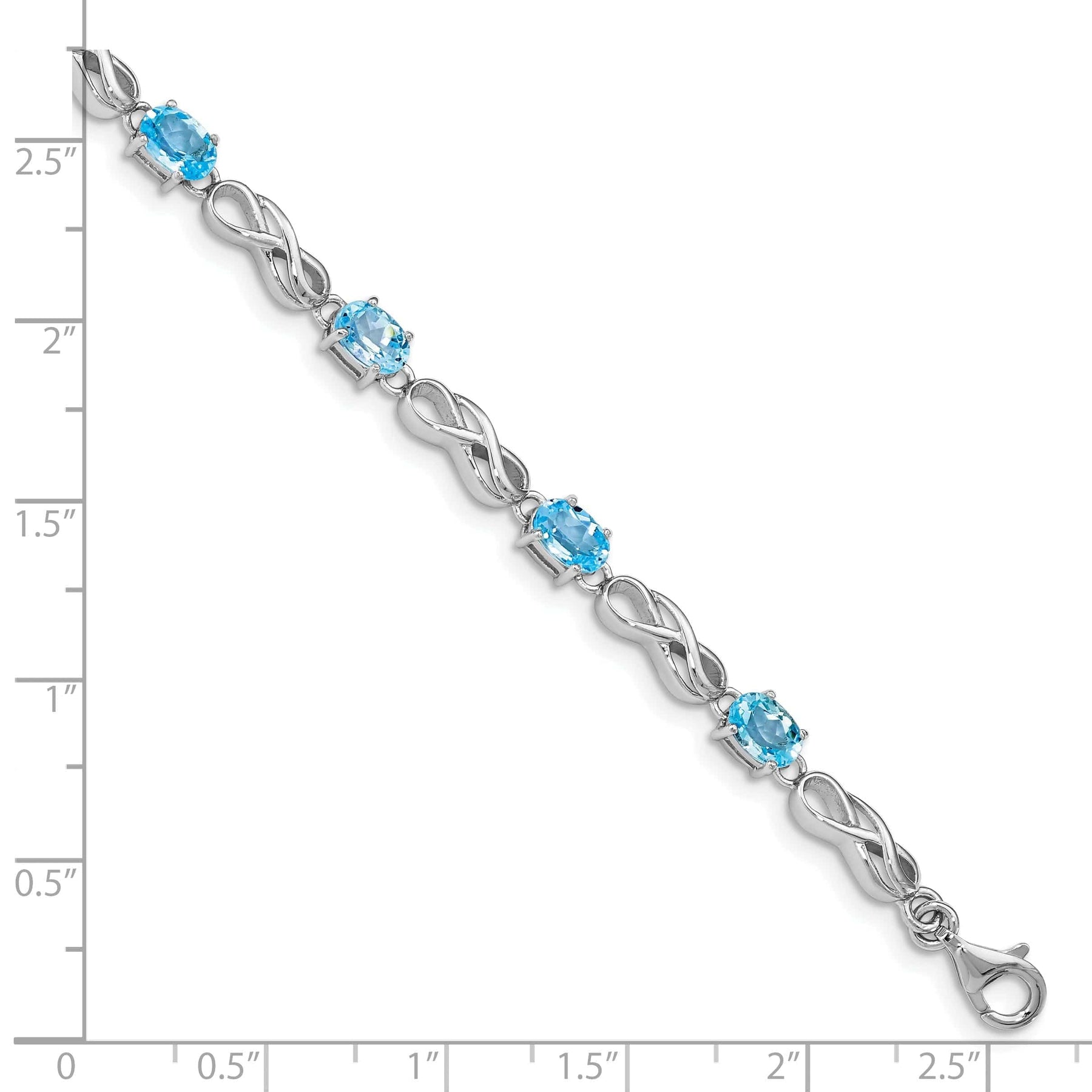 Indulge in the timeless beauty of this exquisite Silver Blue Topaz Gemstone Figure 8 Bracelet. Crafted from high-quality Sterling Silver and treated with a polished rhodium plated finish, this stunning bracelet exudes elegance and sophistication.