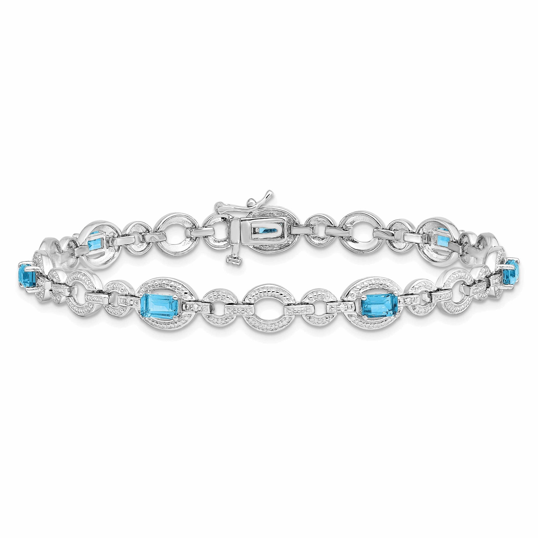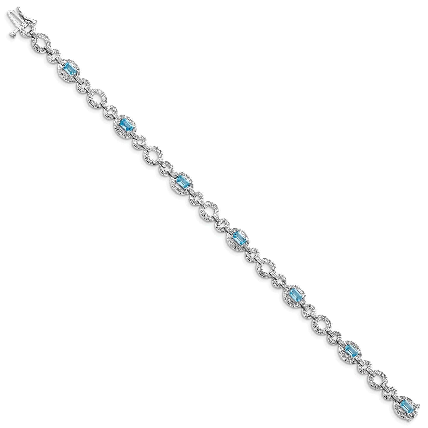 Silver Diamond BlueTopaz Gemstone Bracelet