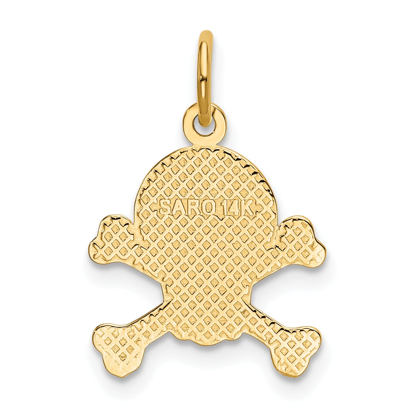 So why wait? Make a bold statement with our 14K Yellow Gold Textured Polished Finish Solid Skull and Cross Bones Design Charm Pendant today. Add it to your jewelry collection and watch as heads turn wherever you go.