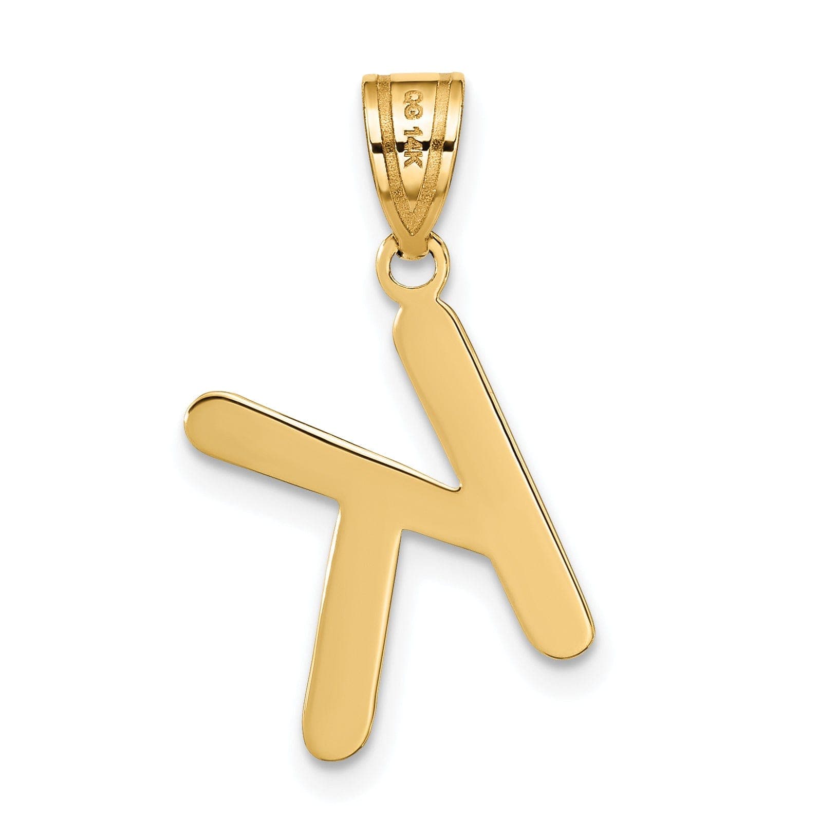 14k Yellow Gold Slanted Design Bubble Letter K Initial Pendant