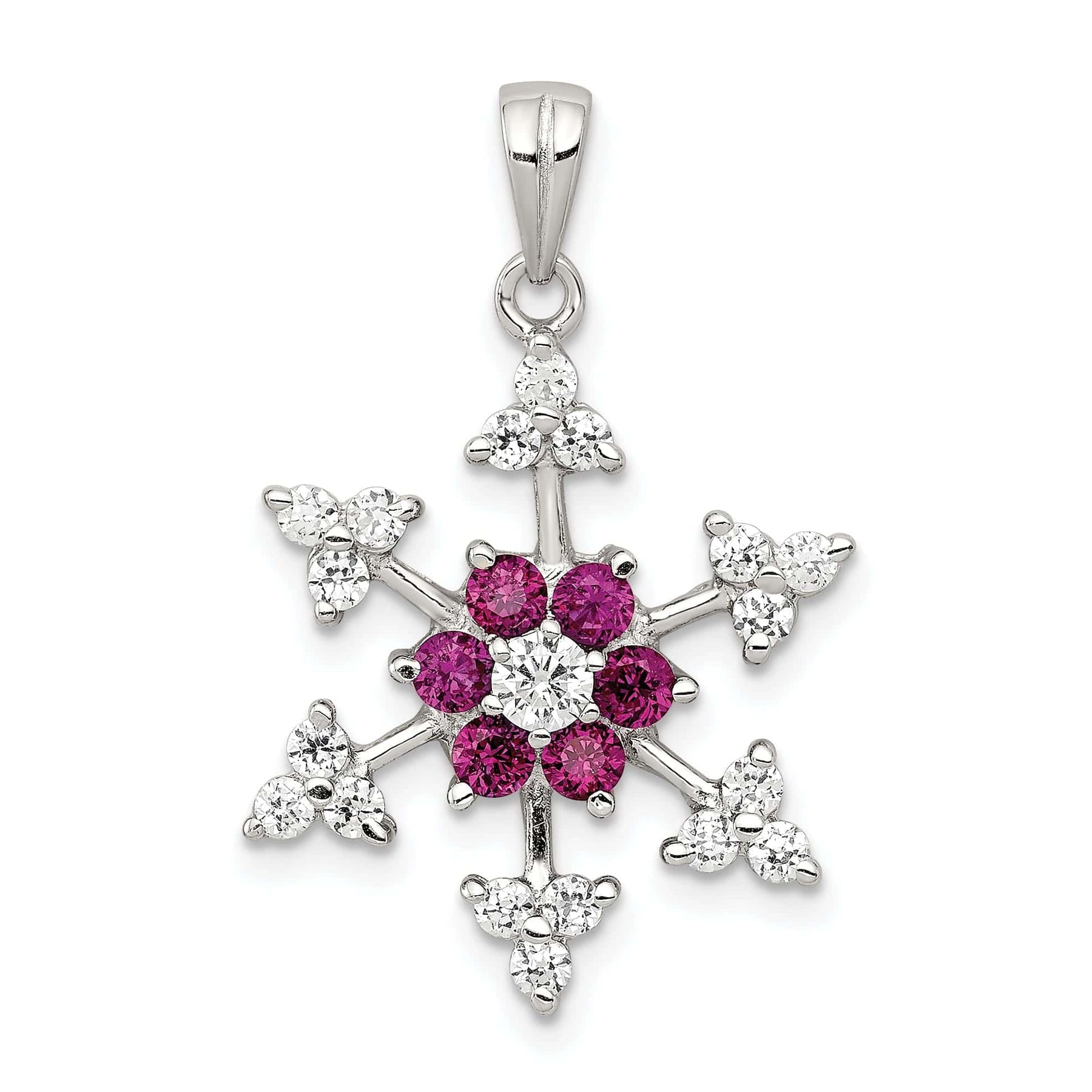Whether you're looking for a special piece to wear during the holiday season or simply want to add a touch of elegance to your everyday look, this snowflake pendant is the perfect choice. The vibrant fuschia cubic zirconia adds a pop of color to the classic silver design, making it a versatile piece that can be worn with any outfit.