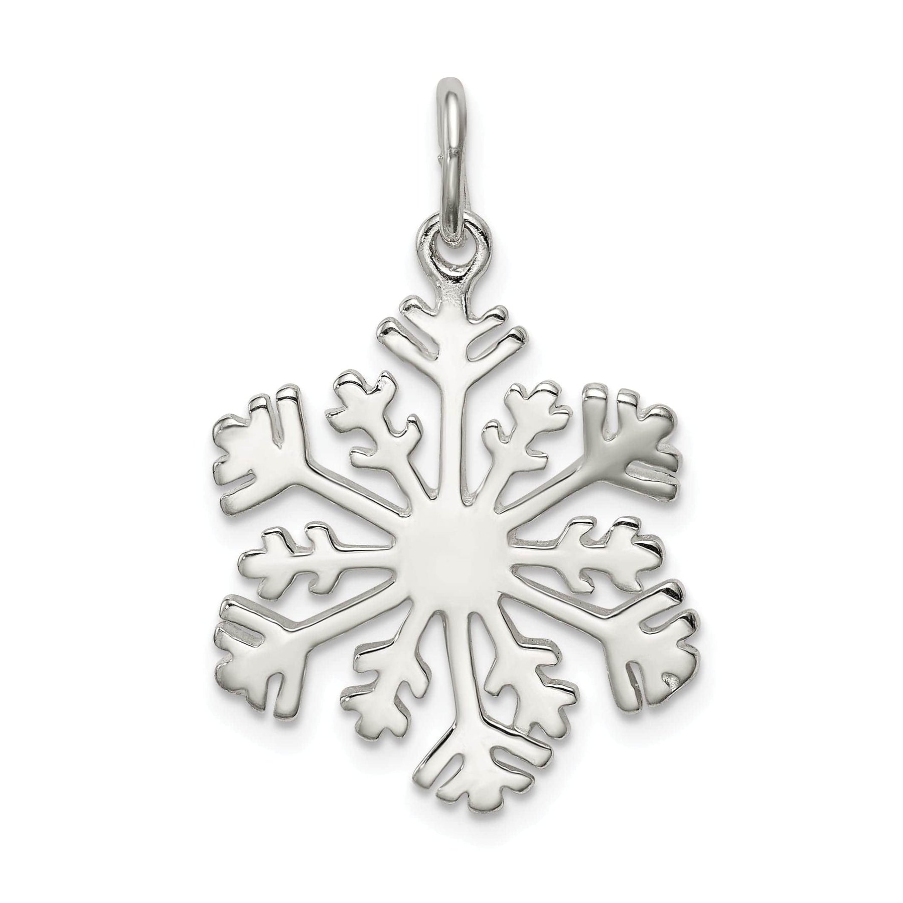 Add a touch of winter wonder to your jewelry collection with this stunning Sterling Silver Polished Snowflake Charm Pendant. This exquisite pendant is crafted from high-quality sterling silver and features a delicate snowflake design that is sure to catch the eye. The pendant has an average weight of 2.16 grams and a width of 21mm, making it the perfect size to wear alone or layer with other necklaces for a more dramatic look. Whether you're looking for a unique gift for a loved one or simply want to treat yourself to something special, this snowflake charm pendant is a timeless piece that will be treasured for years to come. Add it to your collection today and showcase your love for winter with style.