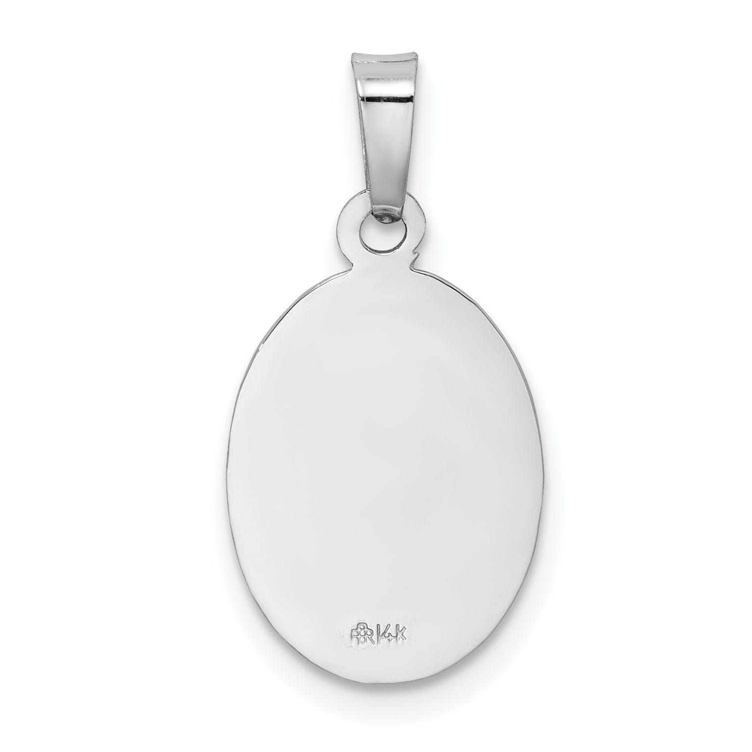 Elegantly crafted from solid 14k white gold, this stunning Saint Christopher oval medal pendant is the perfect accessory for those seeking protection on their travels or daily journeys. The satin polished back adds a touch of sophistication to the piece, while the intricate detailing on the front showcases the patron saint of travelers in all his glory.