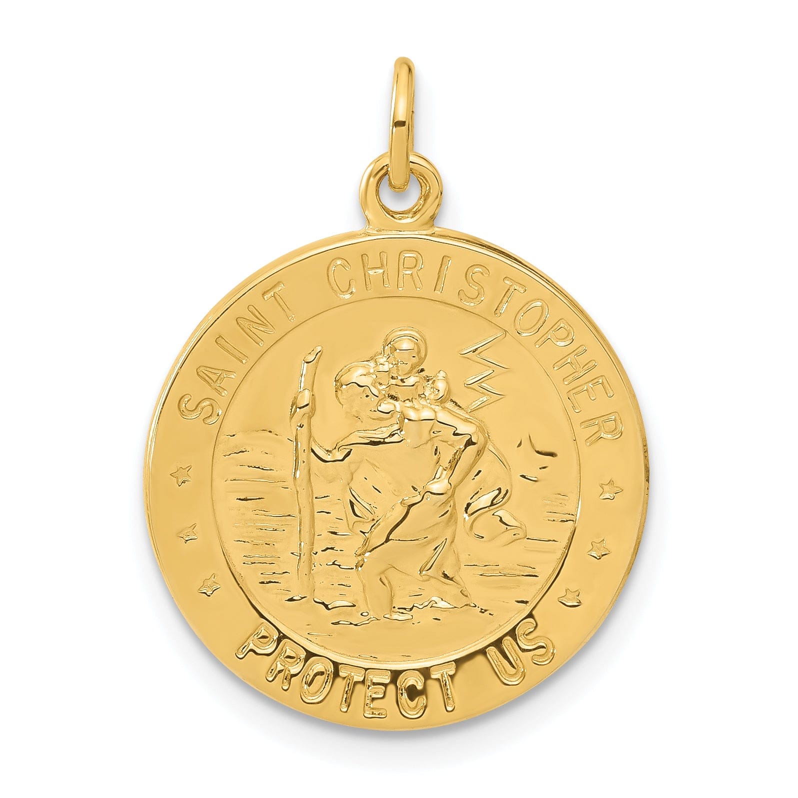 The design features the iconic figure of St. Christopher, the patron saint of travelers and athletes, holding a golf club in one hand and a golf ball in the other. This intricately detailed medal is sure to bring good luck and protection to any golfer on the course.