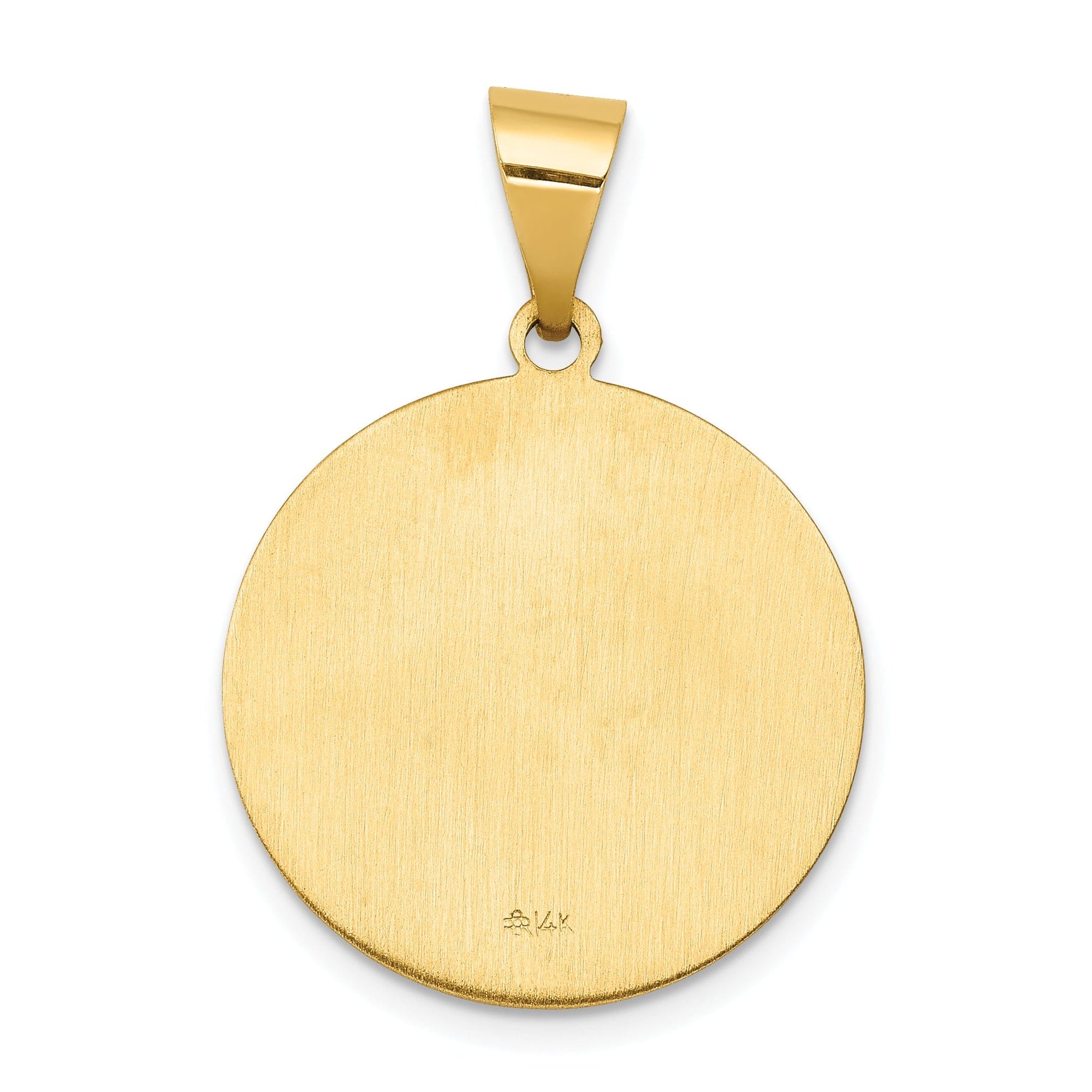 Elevate your style with this stunning 14k Yellow Gold Saint John Medal Pendant. Crafted from hollow 14k yellow gold, this pendant features a beautiful combination of polished and satin finishes, giving it a unique and eye-catching look.