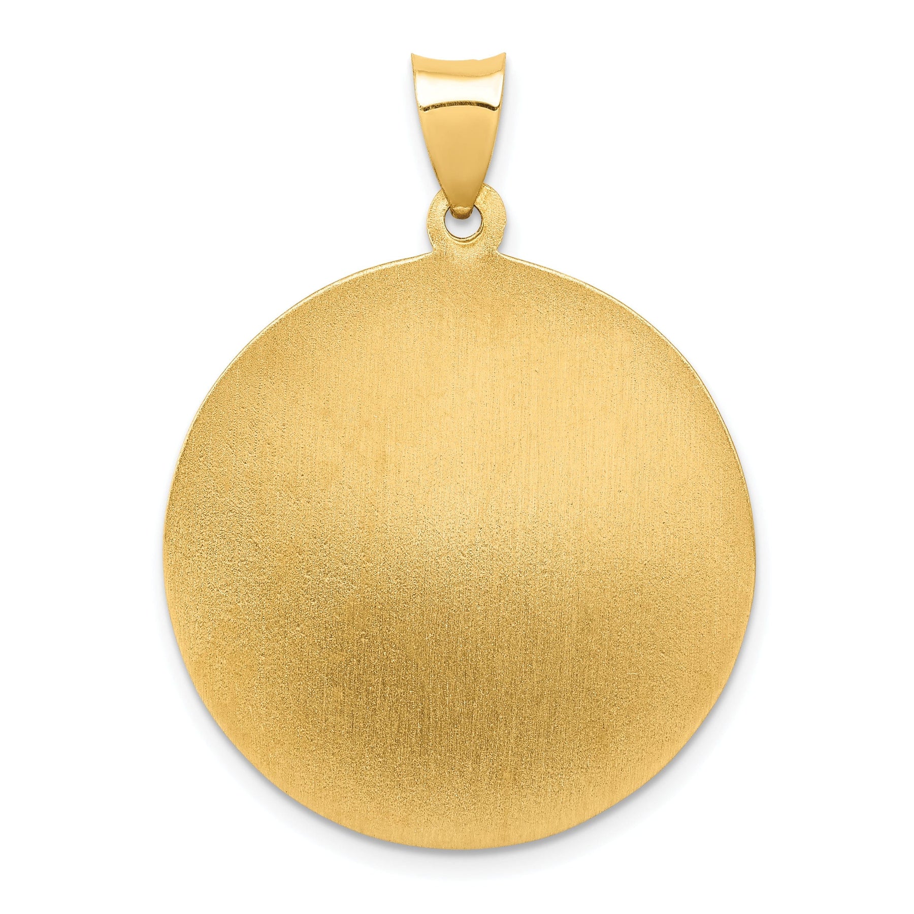 Elevate your style with this stunning 14k Yellow Gold Saint Michael Medal Pendant. Crafted from high-quality, hollow 14k yellow gold, this pendant features a polished and satin finish which adds a sophisticated touch to the design.