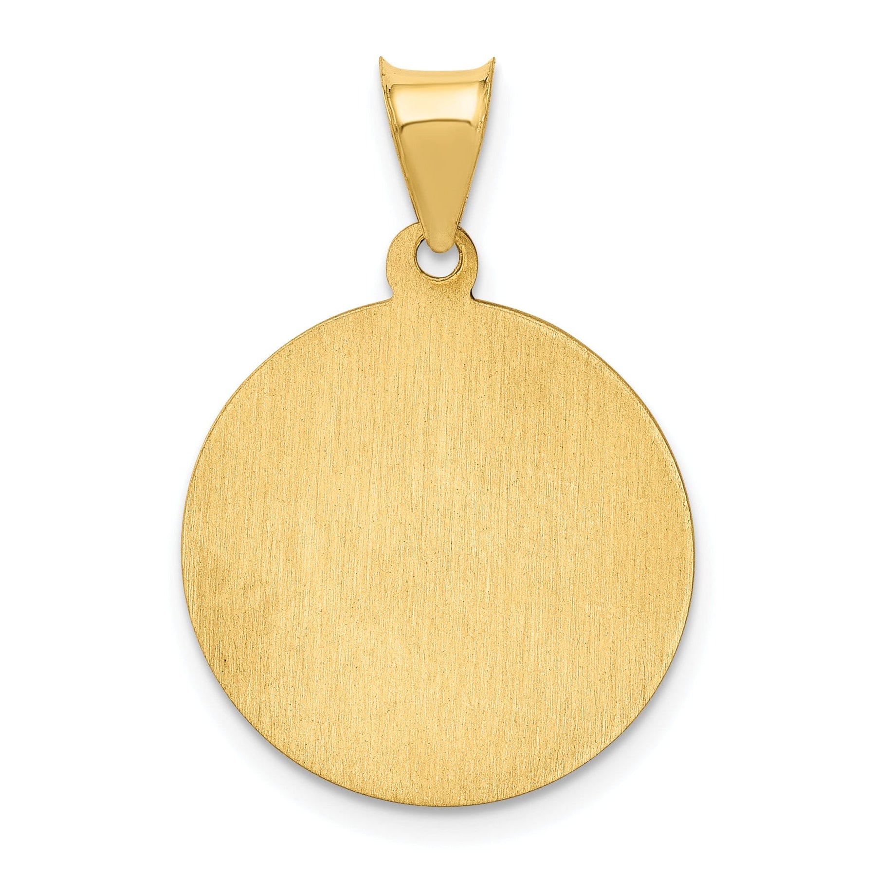 Elevate your jewelry collection with this stunning 14k Yellow Gold Saint Peter Medal Pendant. Crafted from high-quality 14k yellow gold, this pendant features a unique combination of polished and satin finishes, adding depth and dimension to the design. The round pendant showcases a beautifully detailed image of Saint Peter, the patron saint of fishermen and bridge builders.