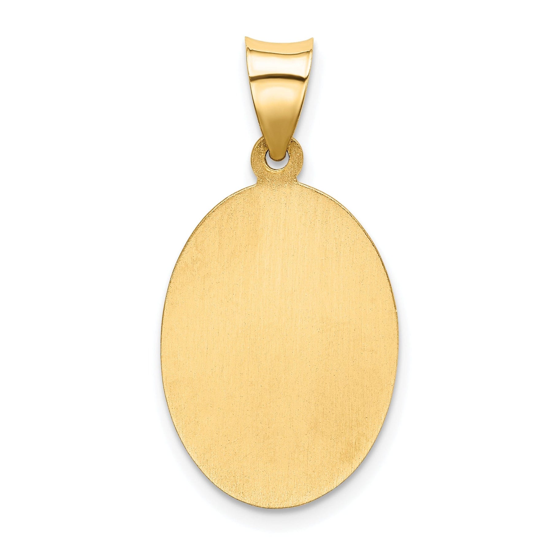 Elegantly crafted from luxurious 14k yellow gold, this stunning Saint Christopher medal pendant is a beautiful symbol of faith and protection. The polished satin finish gives this piece a modern and sophisticated look, while the oval shape and intricate detailing of the medal add a touch of traditional charm.