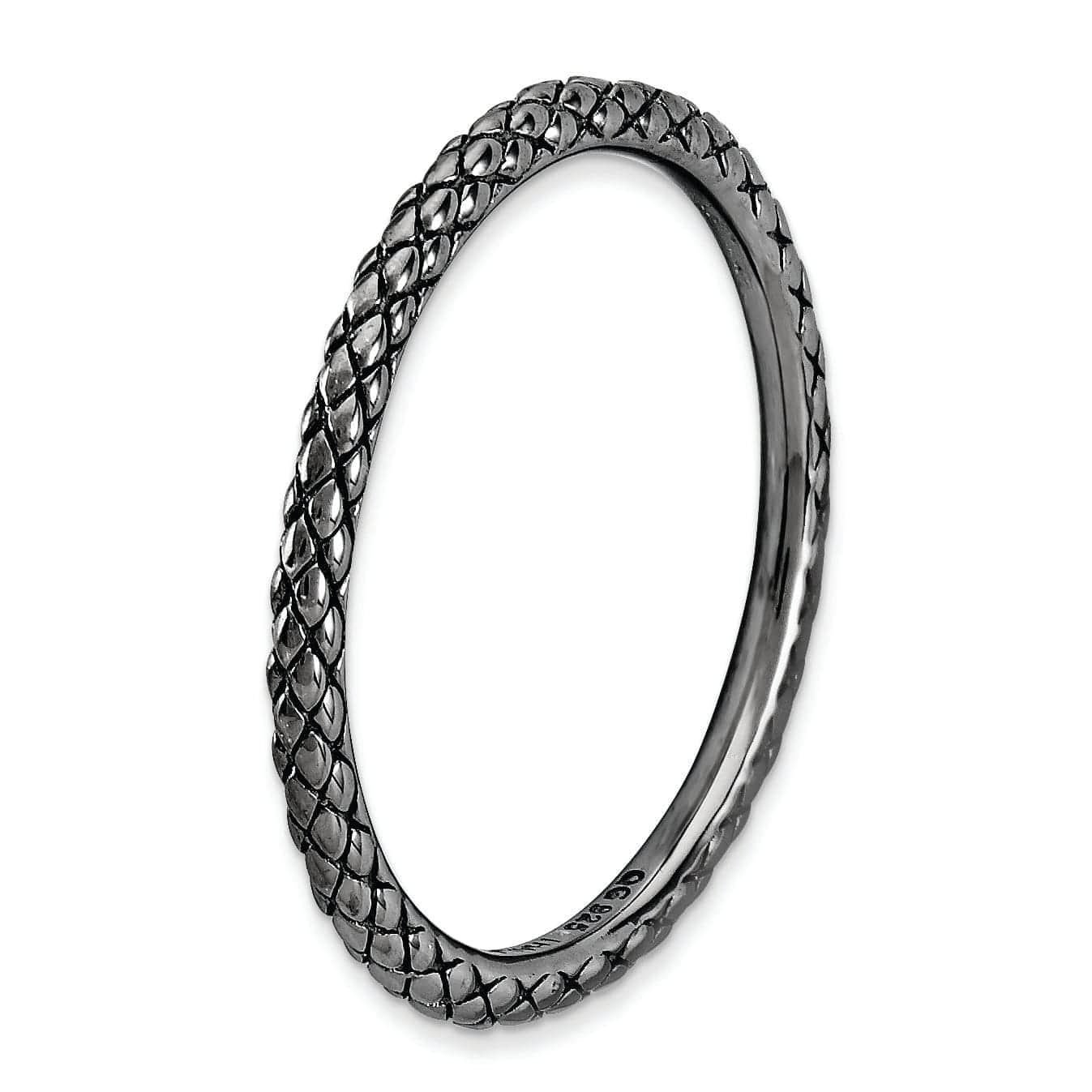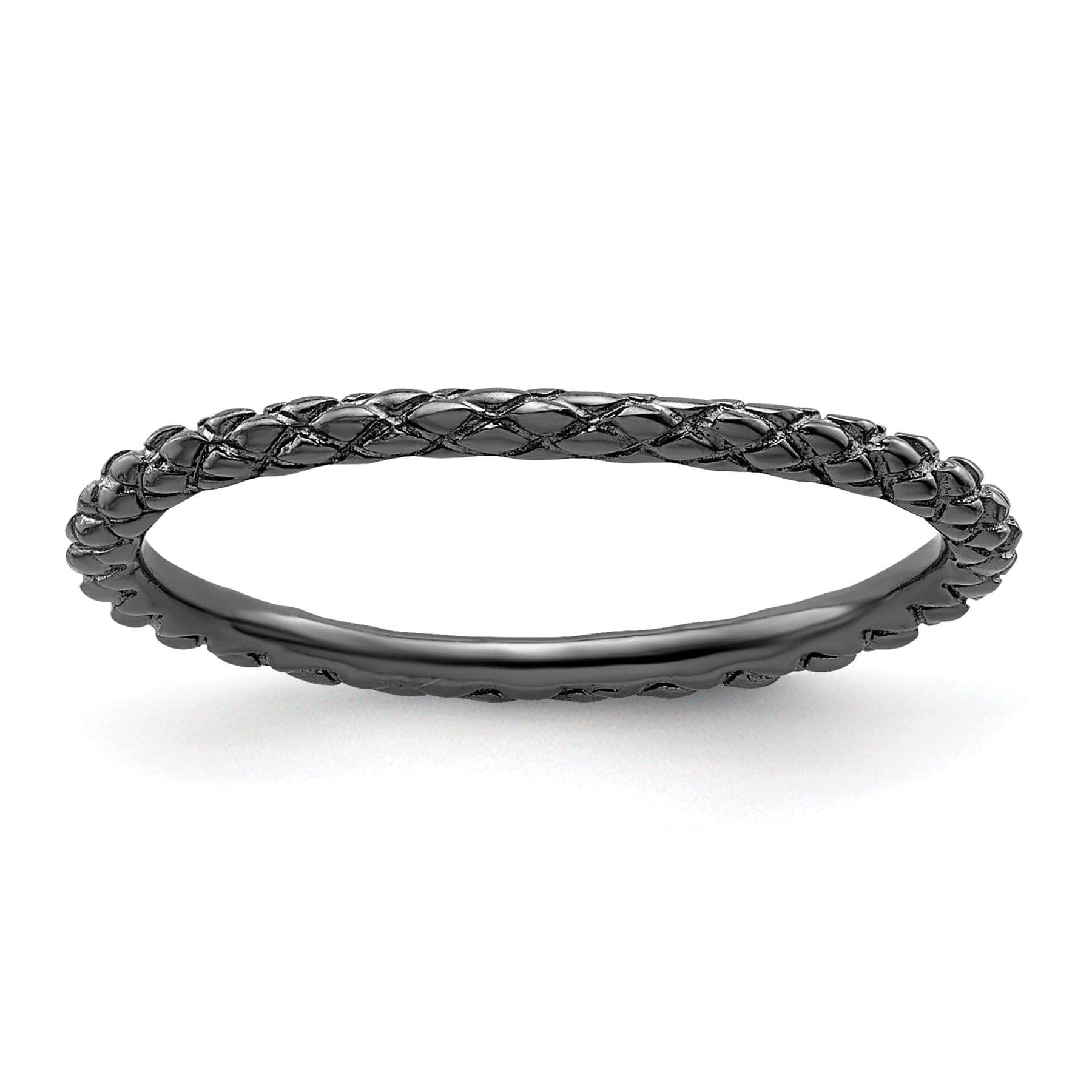 The width of the ring measures 1.5mm, giving it a delicate and refined appearance that will complement any style. Whether you wear it on its own as a statement piece or stack it with other rings for a trendy layered look, this Sterling Silver Black-Plated Criss-Cross Ring is sure to become a favorite in your jewelry collection.
