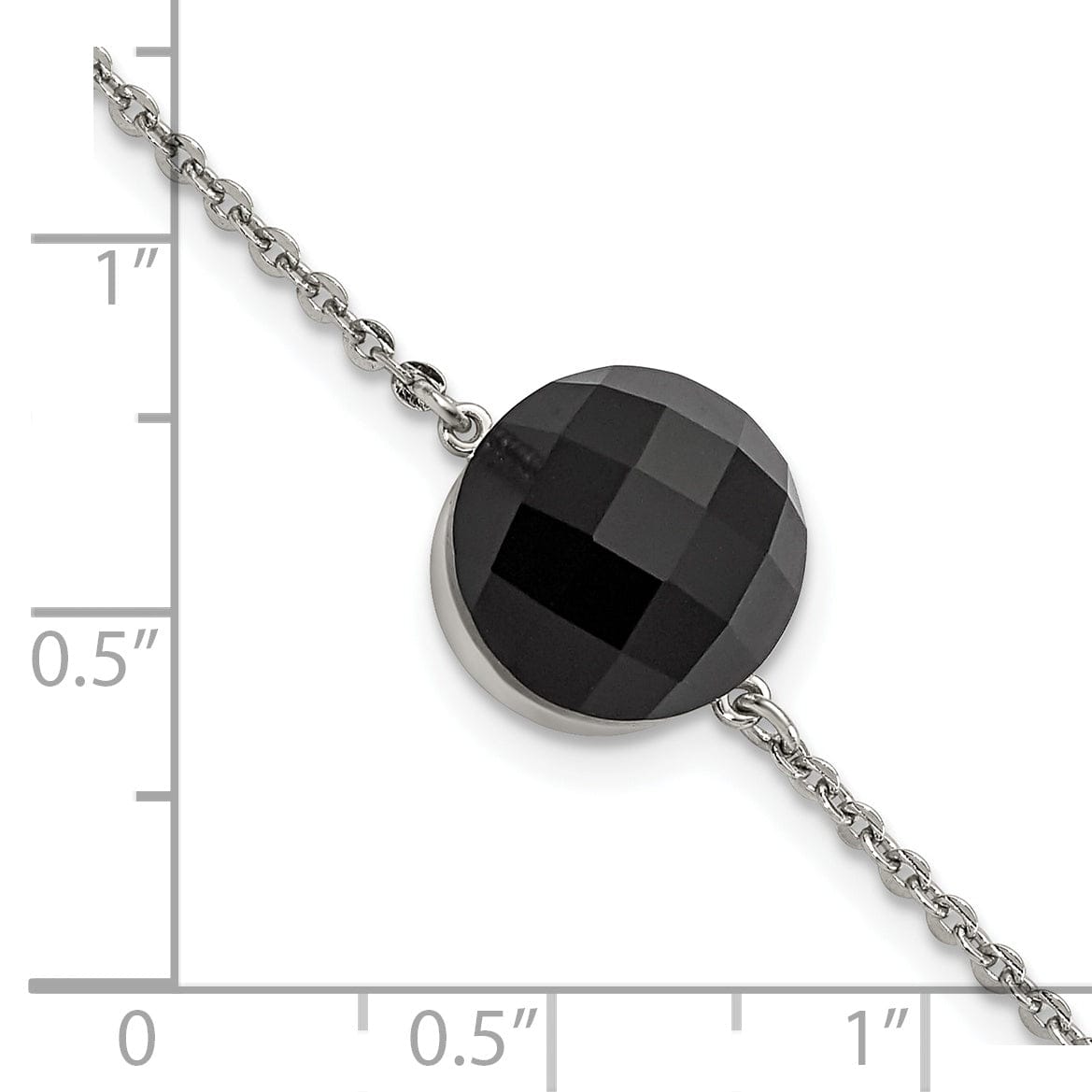 Enhance your wrist with this stunning Stainless Steel Polished Dark Brown Glass Bracelet. Crafted with high-quality stainless steel and dark brown glass beads, this sophisticated piece adds a touch of elegance to any outfit. The polished finish gives it a sleek and modern look, while the 1" extention allows for a customizable fit. Whether worn alone or stacked with other bracelets, this versatile accessory is perfect for both casual and formal occasions. Elevate your style with this timeless and chic Stainless Steel Dark Brown Glass Bracelet.