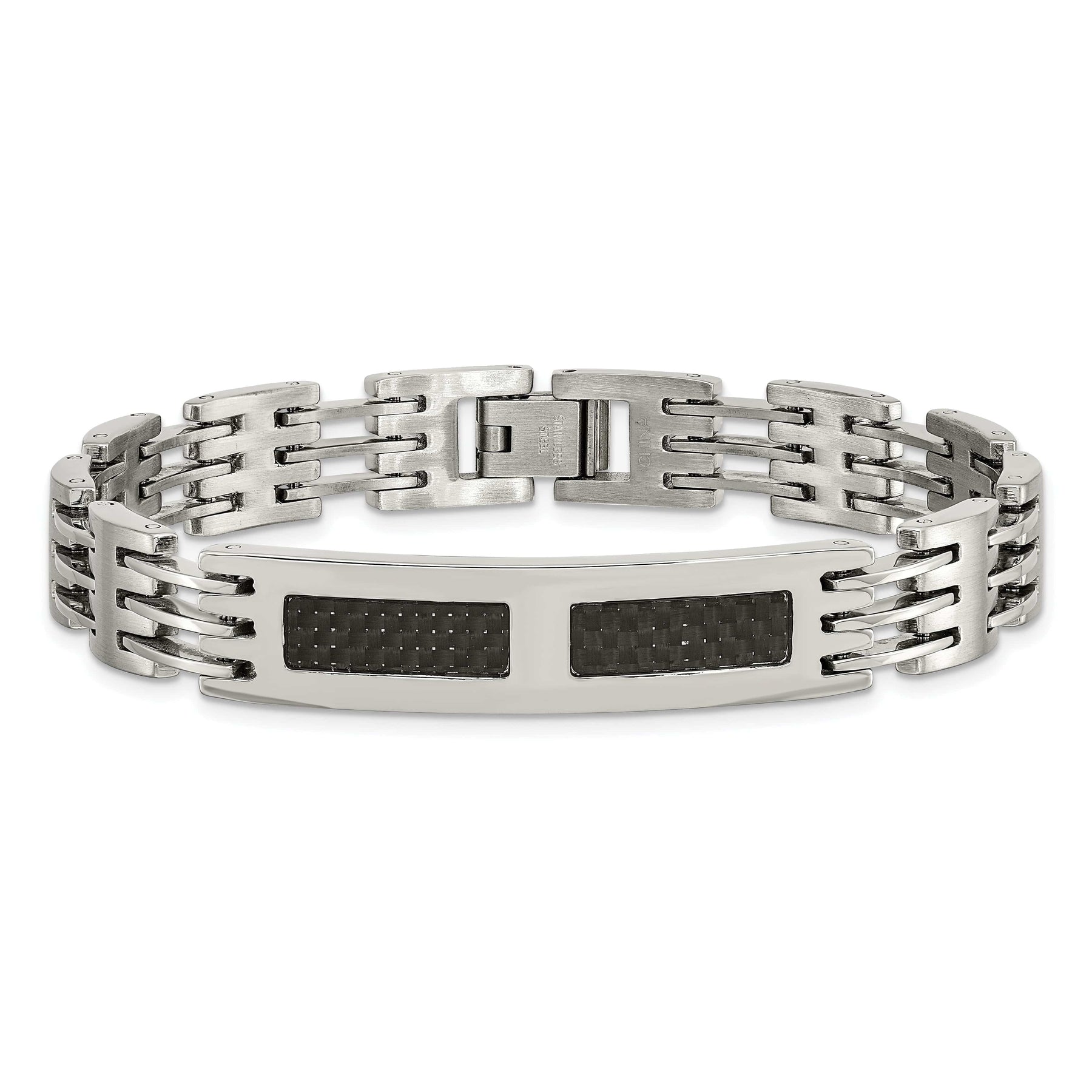 Whether you're looking for a special gift for a birthday, anniversary, or any other occasion, this Stainless Steel Black Carbon Fiber ID Bracelet is sure to impress. It's a versatile accessory that can be dressed up or down, making it suitable for any outfit or style. Stand out from the crowd and make a statement with this one-of-a-kind bracelet.