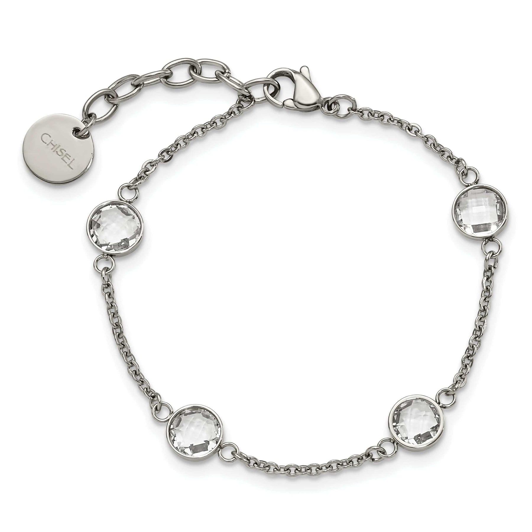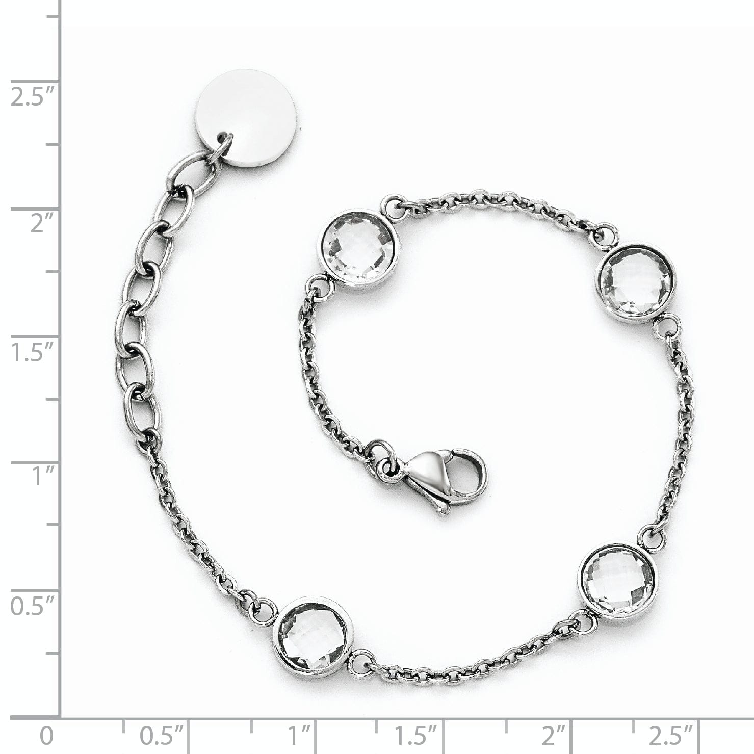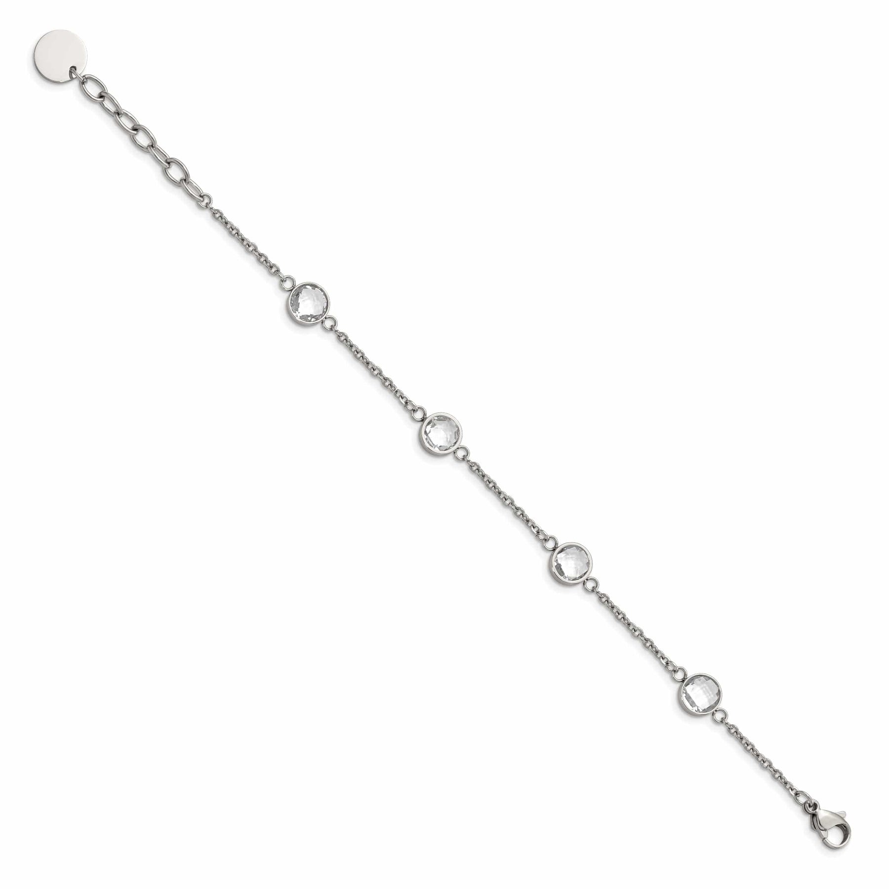 Perfect for both casual and formal occasions, this Stainless Steel Polished with Glass Bracelet is a must-have accessory for anyone who loves timeless and trendy pieces. Add this bracelet to your collection today and enjoy the durability and beauty of stainless steel combined with the unique touch of glass accents.