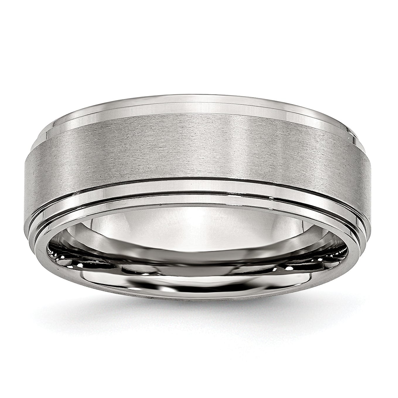 Whether you're looking for a sleek and modern wedding band, a fashionable accessory to complement your everyday look, or a thoughtful gift for a loved one, this Stainless Steel Satin and Polished Ridged Edge Band is the perfect choice. Its durable construction ensures that it will withstand the test of time, making it a versatile and long-lasting addition to any jewelry collection. Upgrade your style with this beautiful band today.