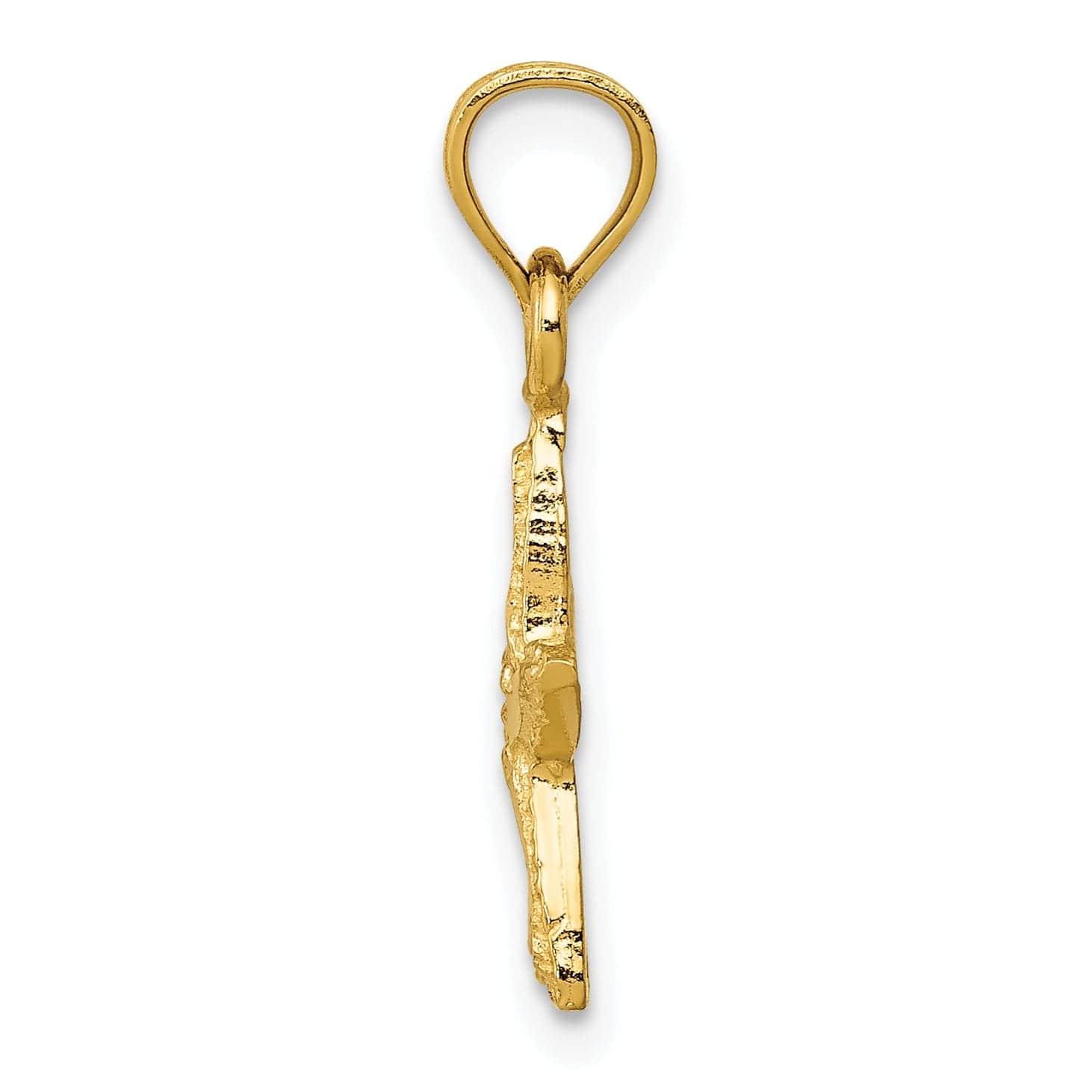 14K Yellow Gold Solid Diamond Cut Polished Finish Starfish Charm Pendant