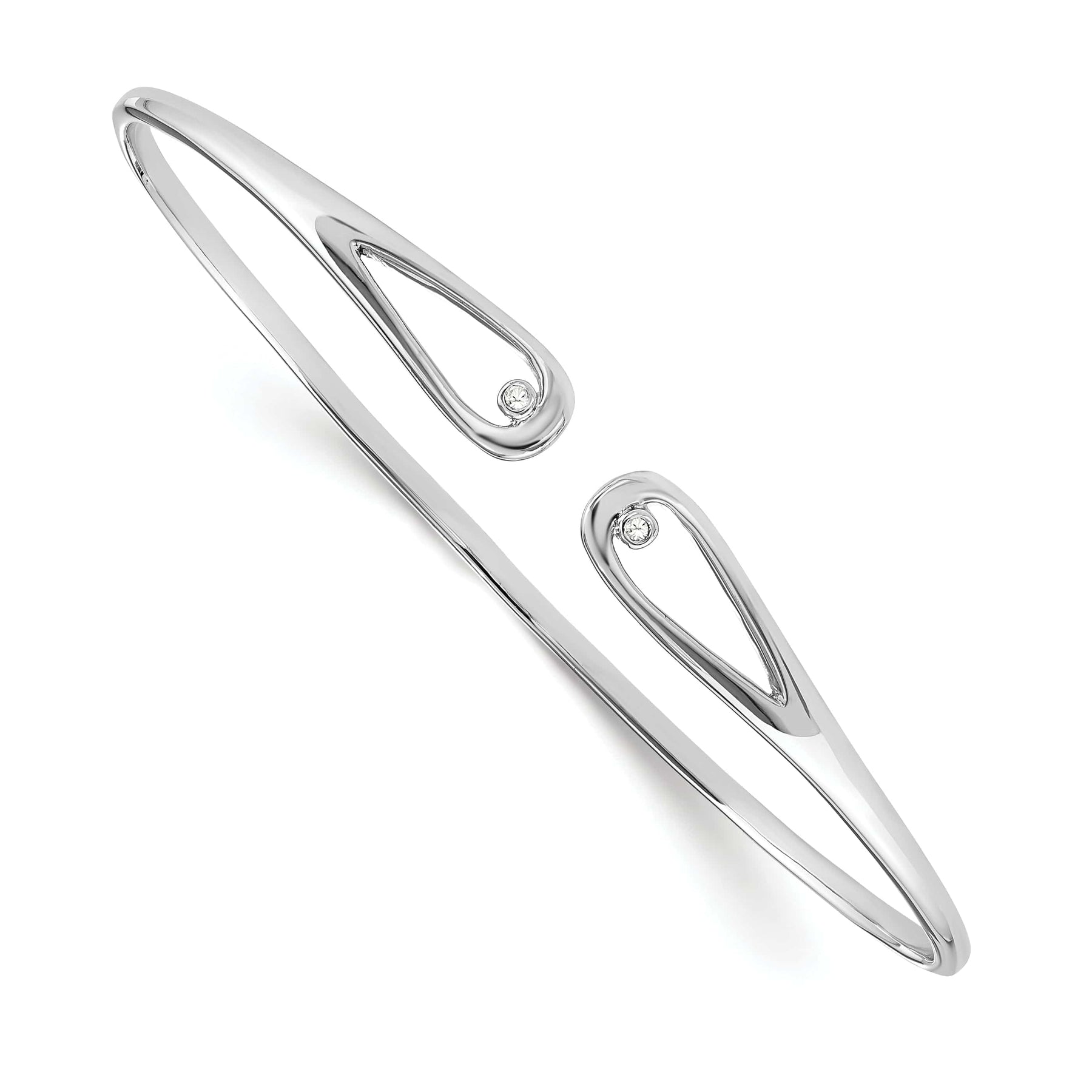 The bracelet features shimmering i2 clarity I-J color diamonds that add a touch of sparkle and luxury to the design. With a total carat weight of 0.02, these diamonds catch the light beautifully and create a radiant glow. The sleek and modern design of the bangle allows for easy slipping on and off, making it a versatile and timeless accessory for any occasion.