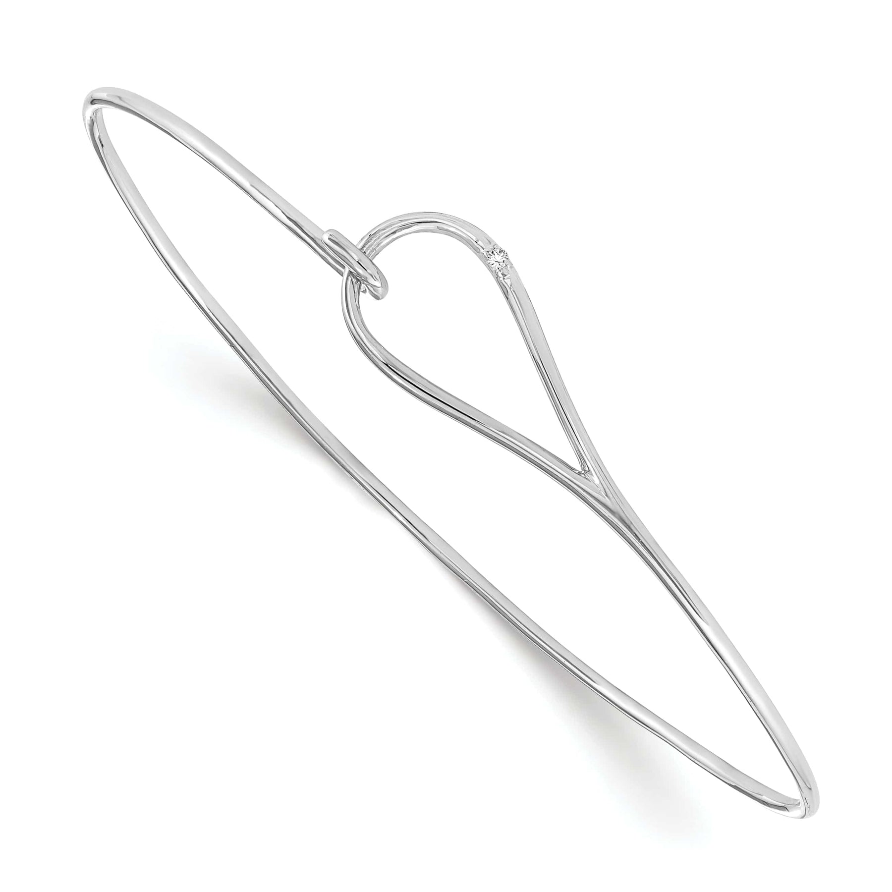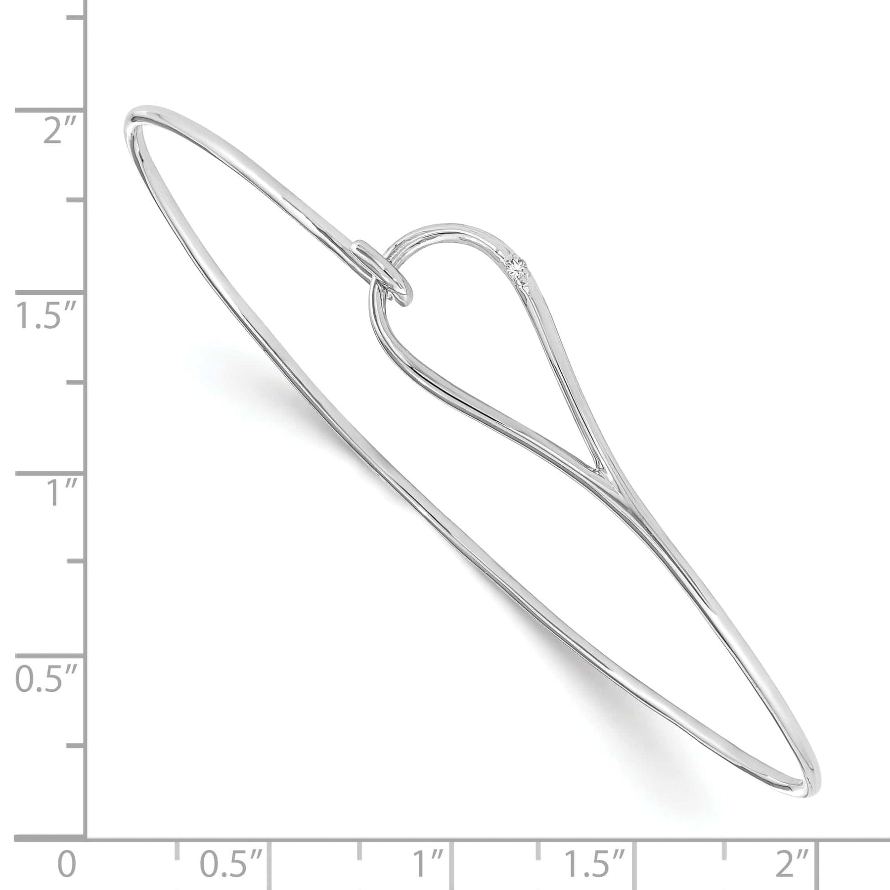 Crafted from high-quality sterling silver, this bangle bracelet features a polished rhodium plated finish that gives it a brilliant shine that will last for years to come. The bracelet is adorned with sparkling i2 clarity I-J color 0.01-ctw diamond white ice stones that add a touch of glamor and sophistication to the piece.