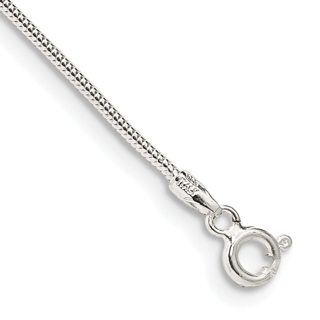 The spring ring clasp ensures a secure closure, so you can wear this chain with confidence knowing that it will stay in place all day long. Whether you're dressing up for a special event or adding a touch of glamour to your everyday attire, this Sterling Silver Polished Finish 1.20-mm Round Snake Chain is a must-have piece for any jewelry lover. Add it to your collection today and enjoy its timeless beauty for years to come.