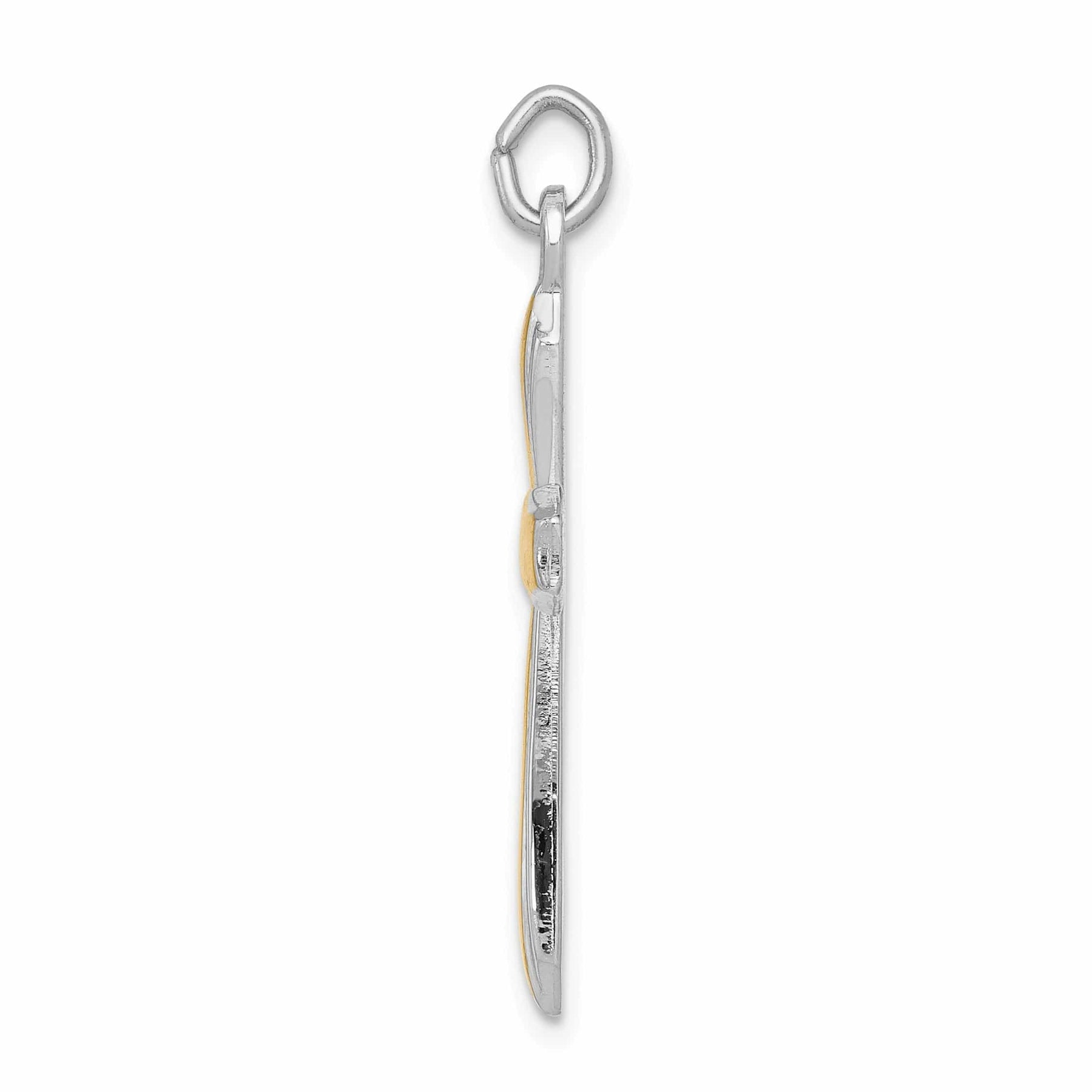 With a width of 17mm, this timeless piece is sure to make a statement wherever you go. The combination of sterling silver and gold plating gives this pendant a beautiful contrast that will complement any outfit.