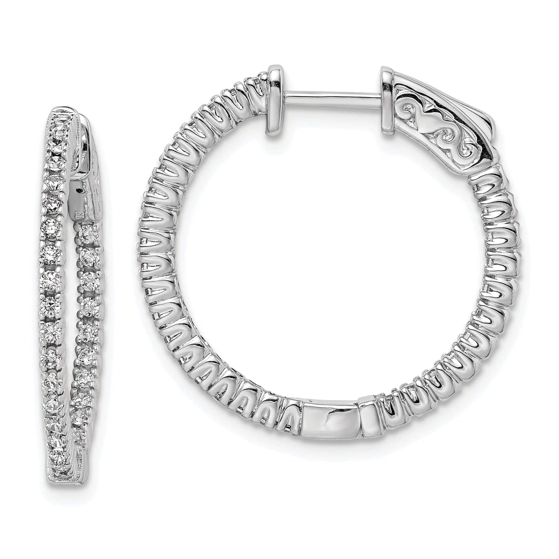Elevate your everyday style with these stunning Sterling Silver 60 Stones Round Hoop Earrings. Crafted from high-quality sterling silver, these earrings feature a total of 60 sparkling cubic zirconia stones, intricately set both inside and outside the round hoop design.