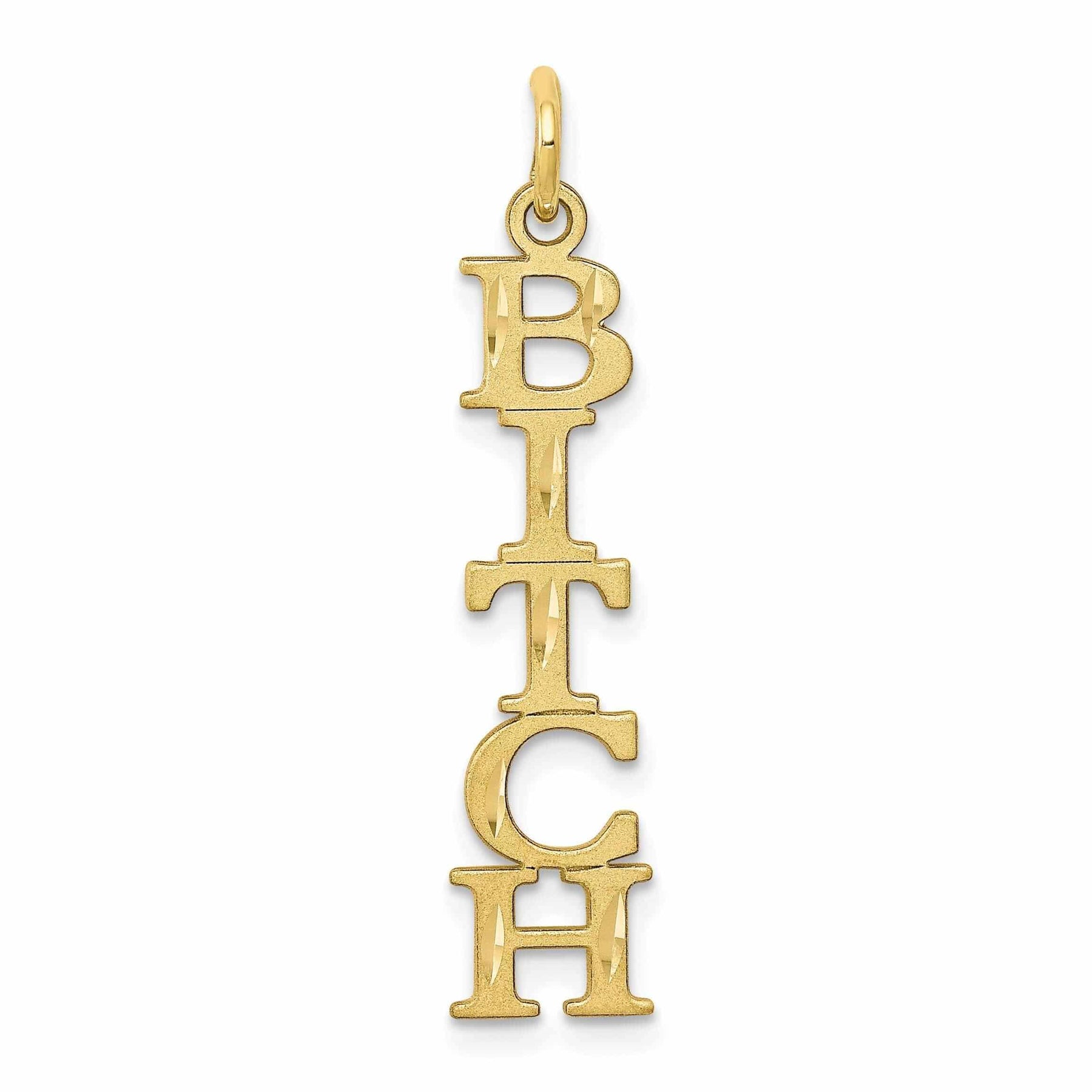 Whether you wear it alone as a statement piece or layer it with other necklaces for a more eclectic look, this 10k Yellow Gold Bitch Talking Pendant is a versatile and eye-catching addition to your jewelry collection. Embrace your inner rebel and showcase your unique personality with this one-of-a-kind pendant.