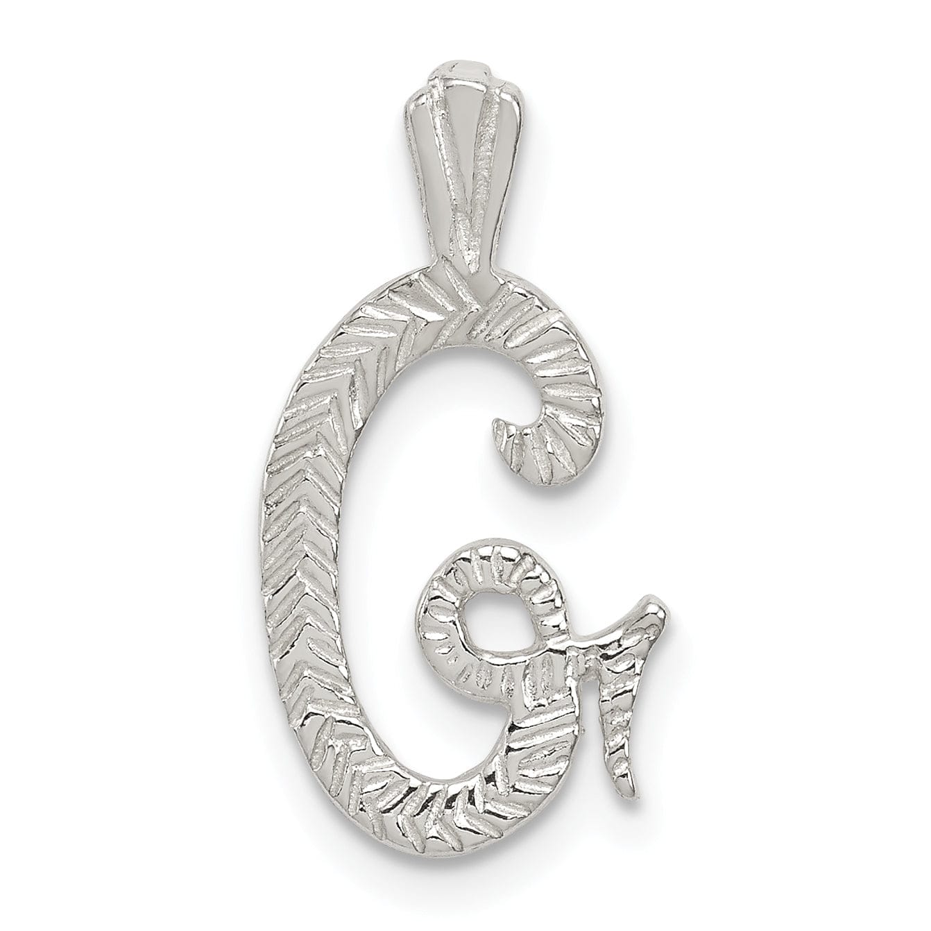 Silver Polished Textured Letter G Charm Pendant