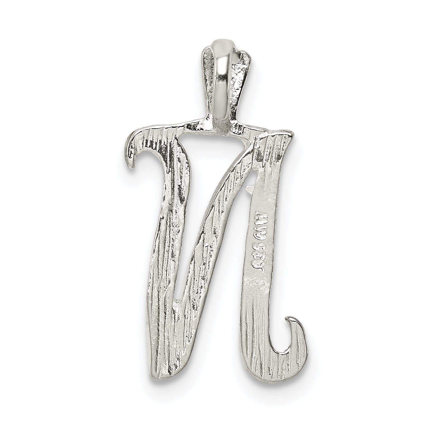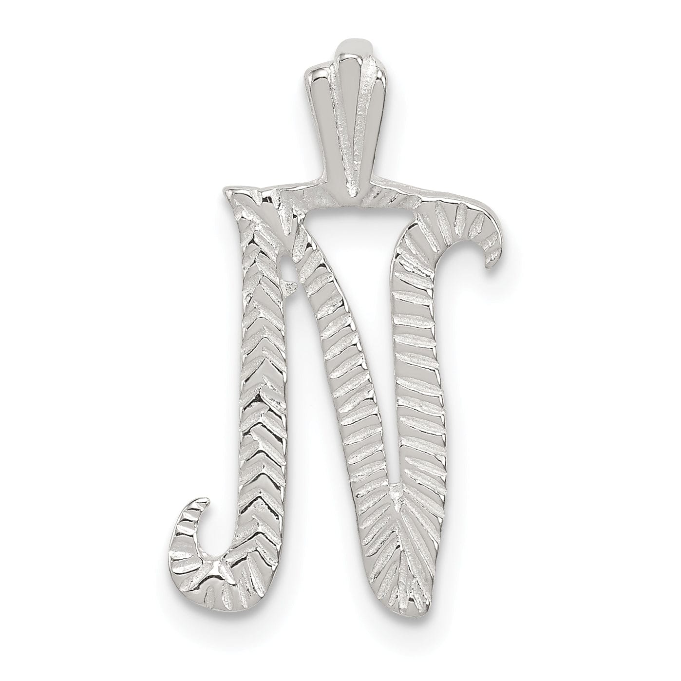 Silver Polished Textured Letter N Charm Pendant