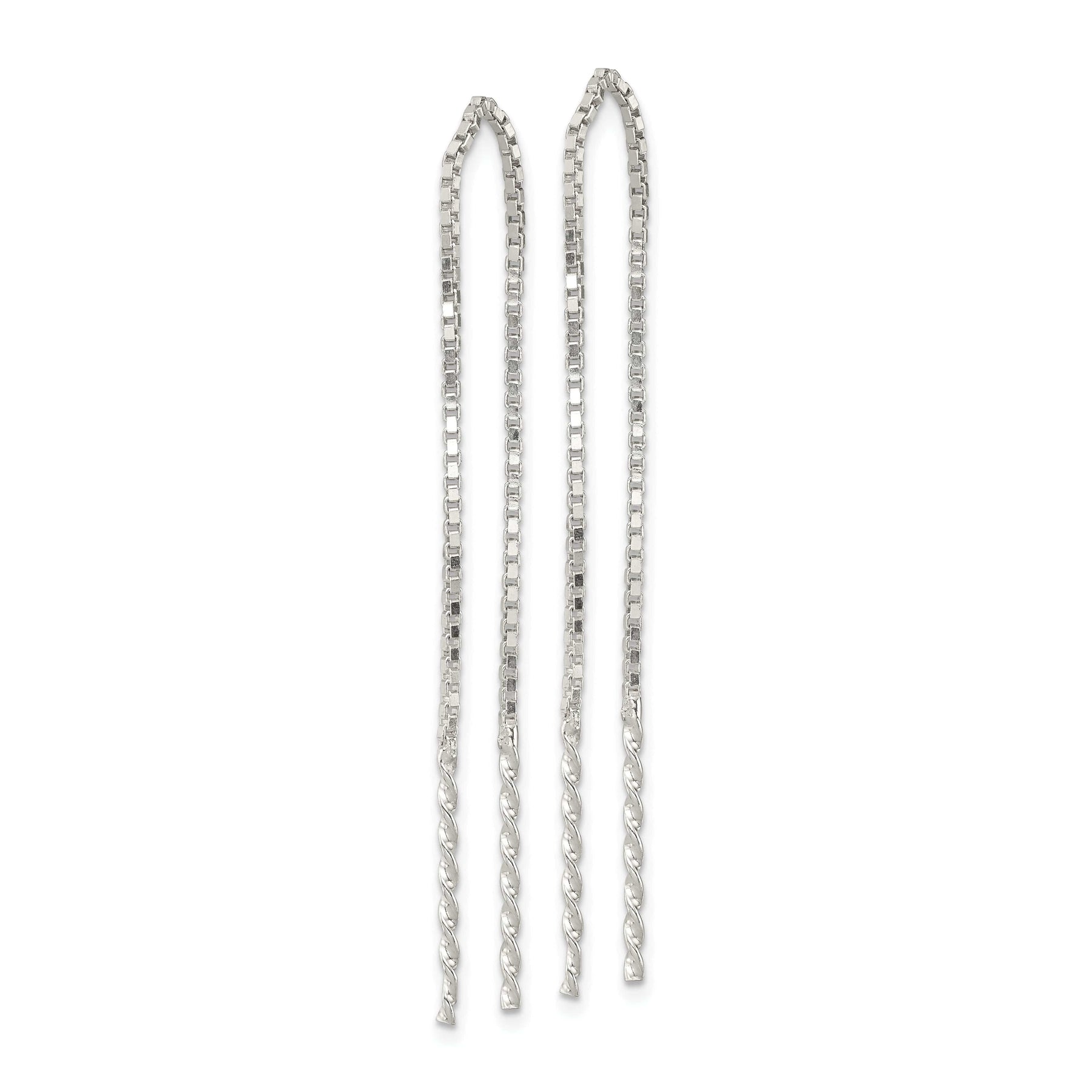 These sterling silver spiral bar threader earrings are a must-have addition to your jewelry collection. Whether you're treating yourself or looking for the perfect gift for a loved one, these earrings are sure to be a favorite. Add a touch of glamour and sophistication to your style with these stunning earrings. Order yours today and elevate your look with these beautiful sterling silver spiral bar threader earrings.