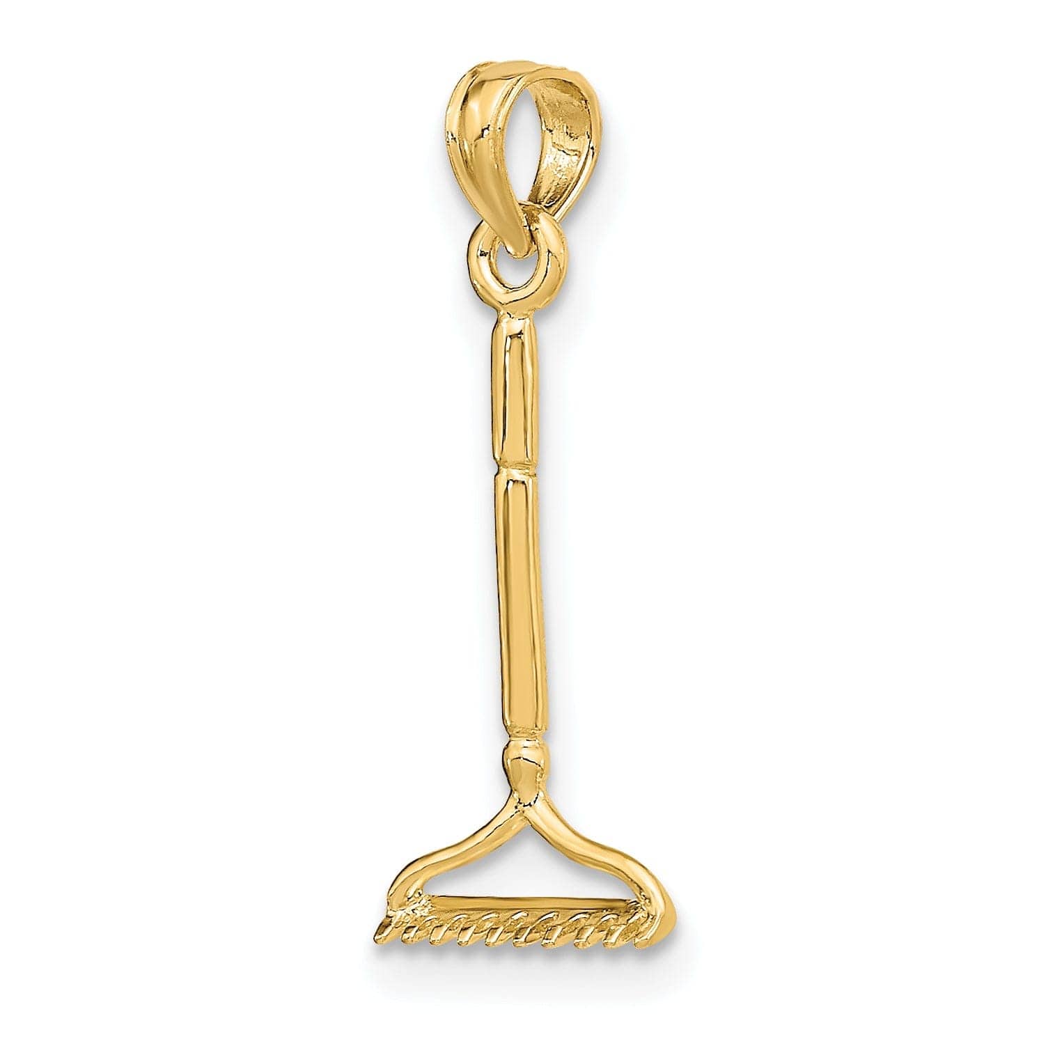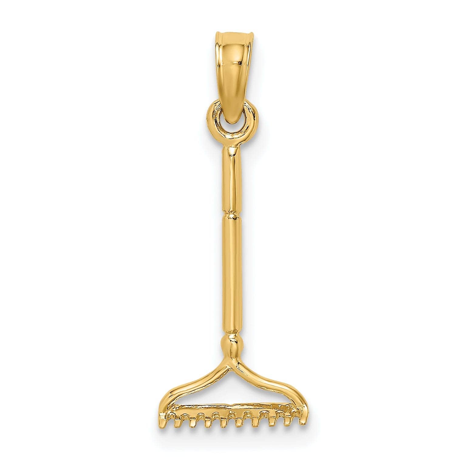 Lovely Rita's Pendants & Charms 14K Yellow Gold Polished Finish 3-Dimensional Landscape Rake Garden Tool Charm Pendant