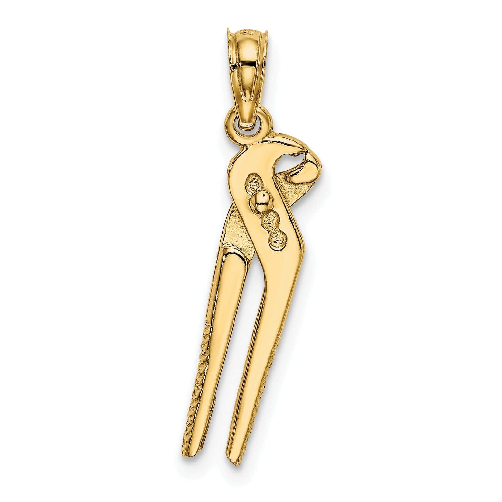 14K Yellow Gold Polished Finish 3-D Moveable Pliers Charm Pendant