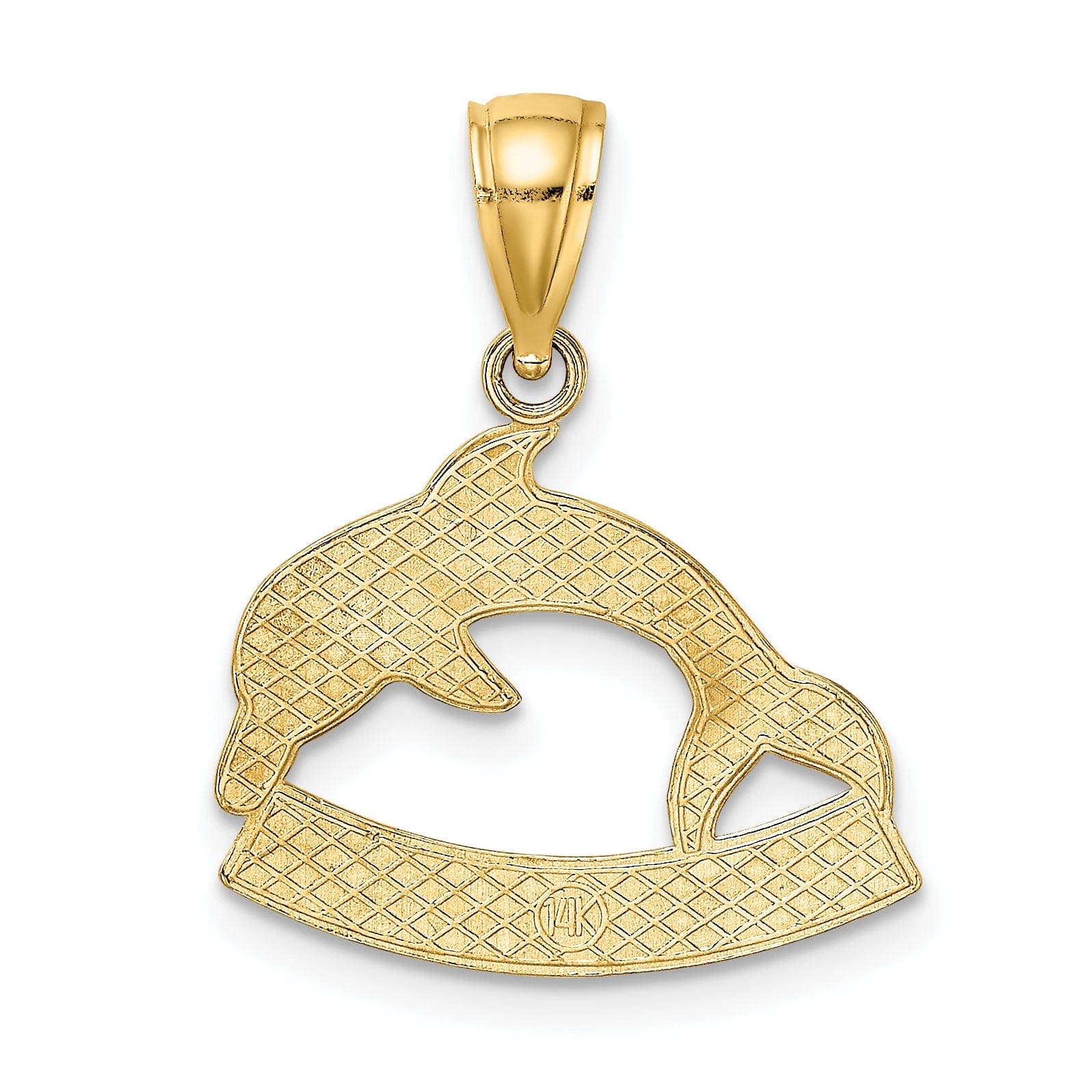 Treat yourself or someone special to this stunning 14K Yellow Gold Polished Finish BARBADOS Under Dolphin Design Charm Pendant and make a statement with your style.