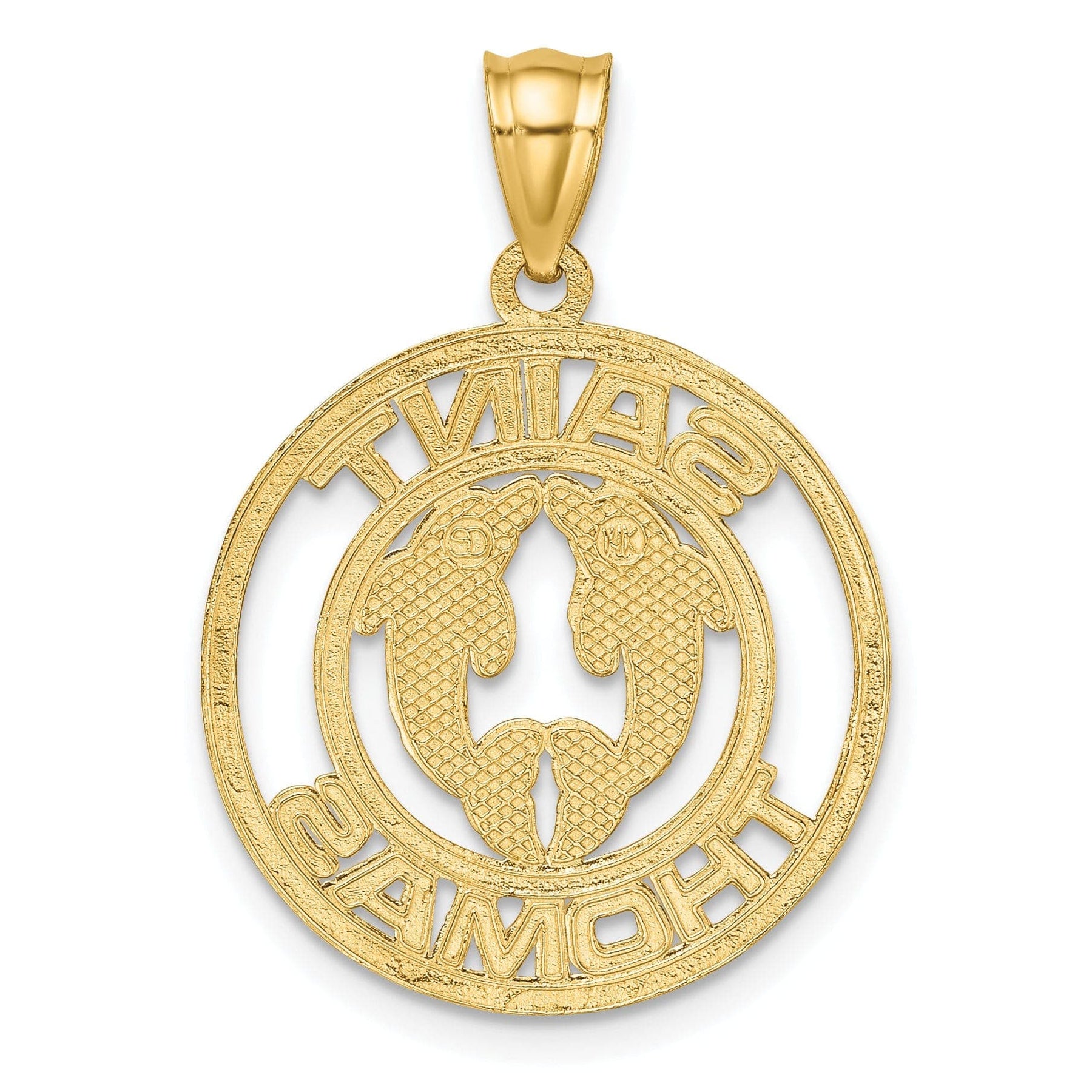 14K Yellow Gold Polished Finish SAINT THOMAS Circle Design with Double Dolphins Charm Pendant