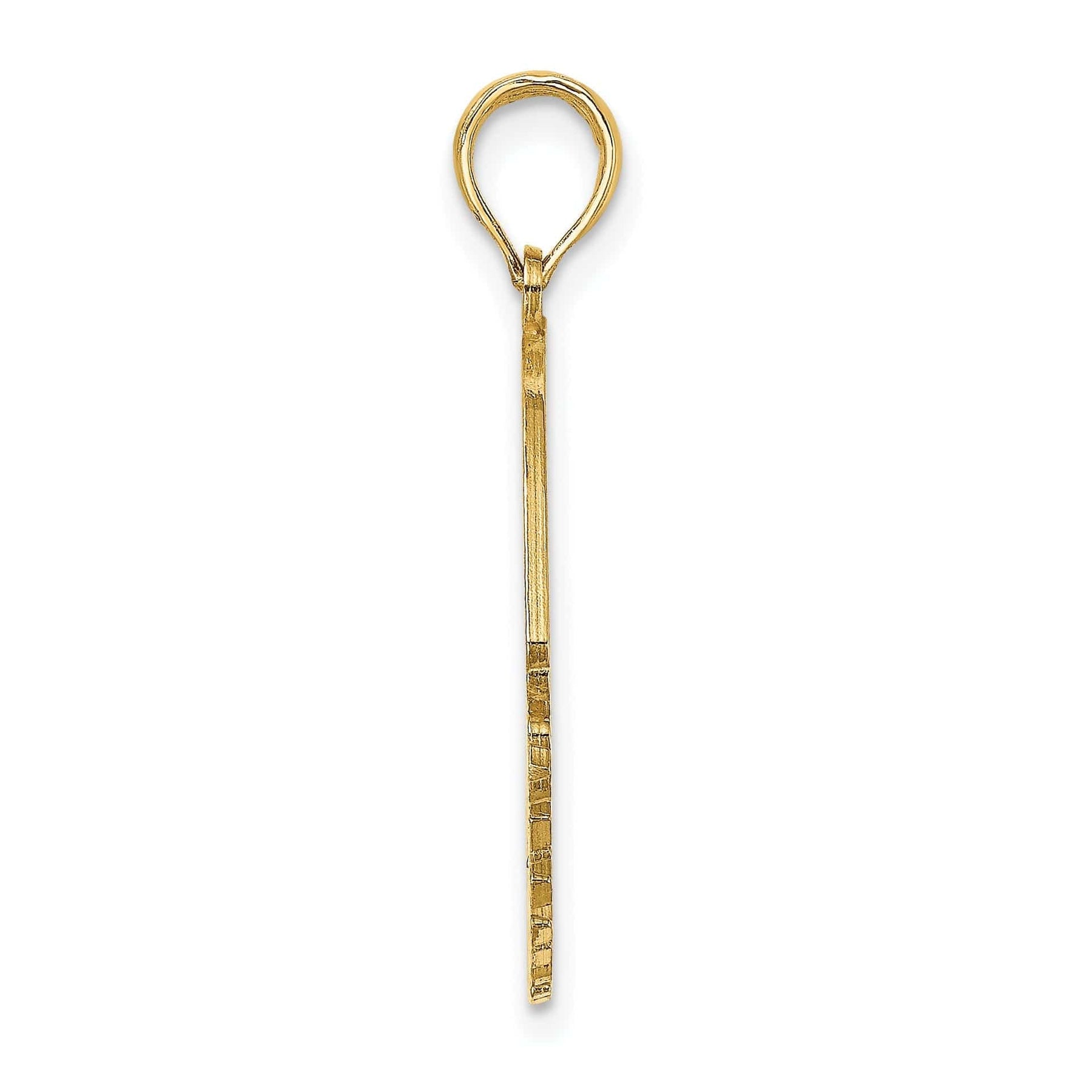 Crafted from high-quality 14K yellow gold, this pendant has a polished finish that adds a luxurious touch to any outfit. The Saint Thomas cut out design gives this piece a unique and intricate look that sets it apart from traditional charm pendants.