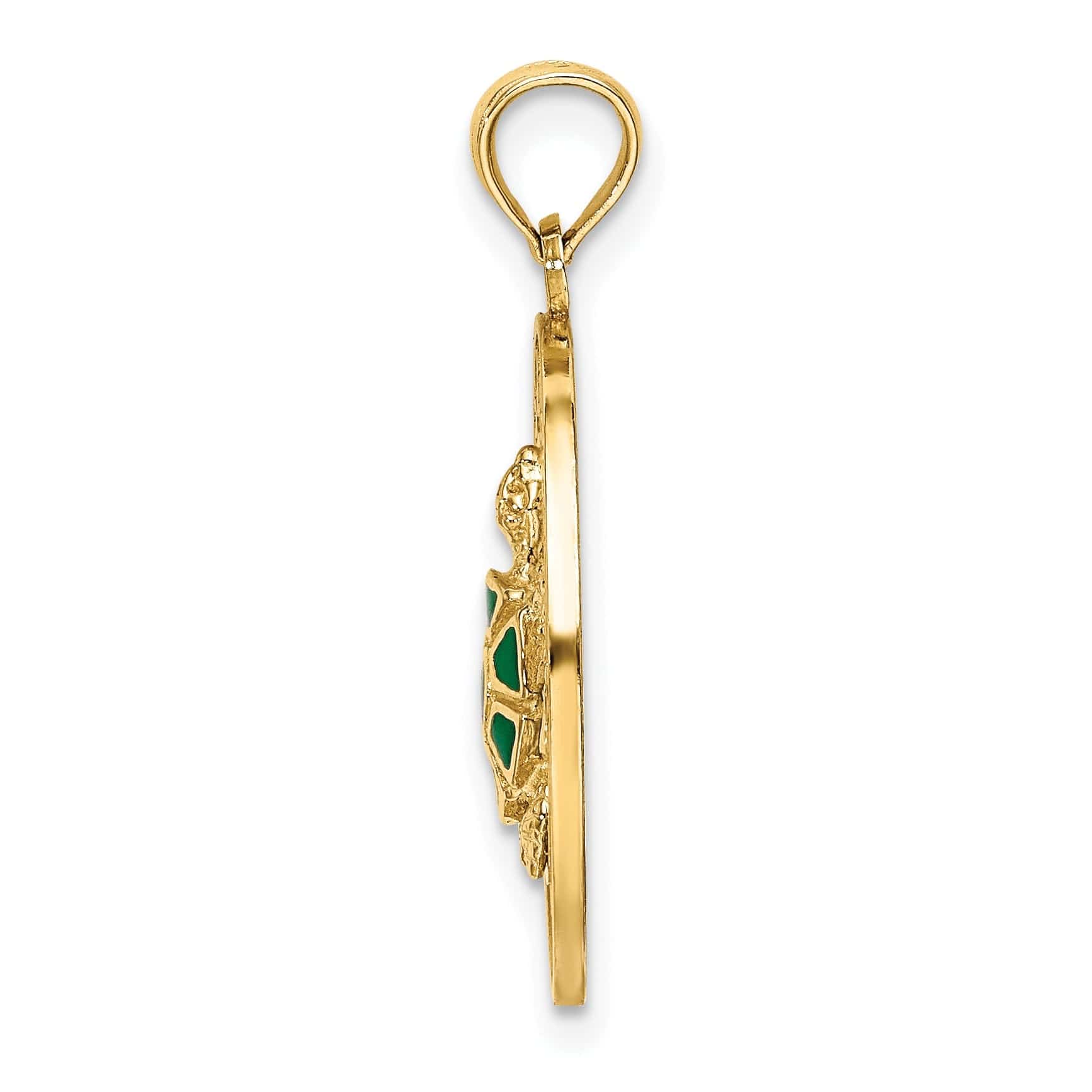 14K Yellow Gold Polished Green Enameled Finish TURKS & CAICOS Circle Design with Turtle Charm Pendant