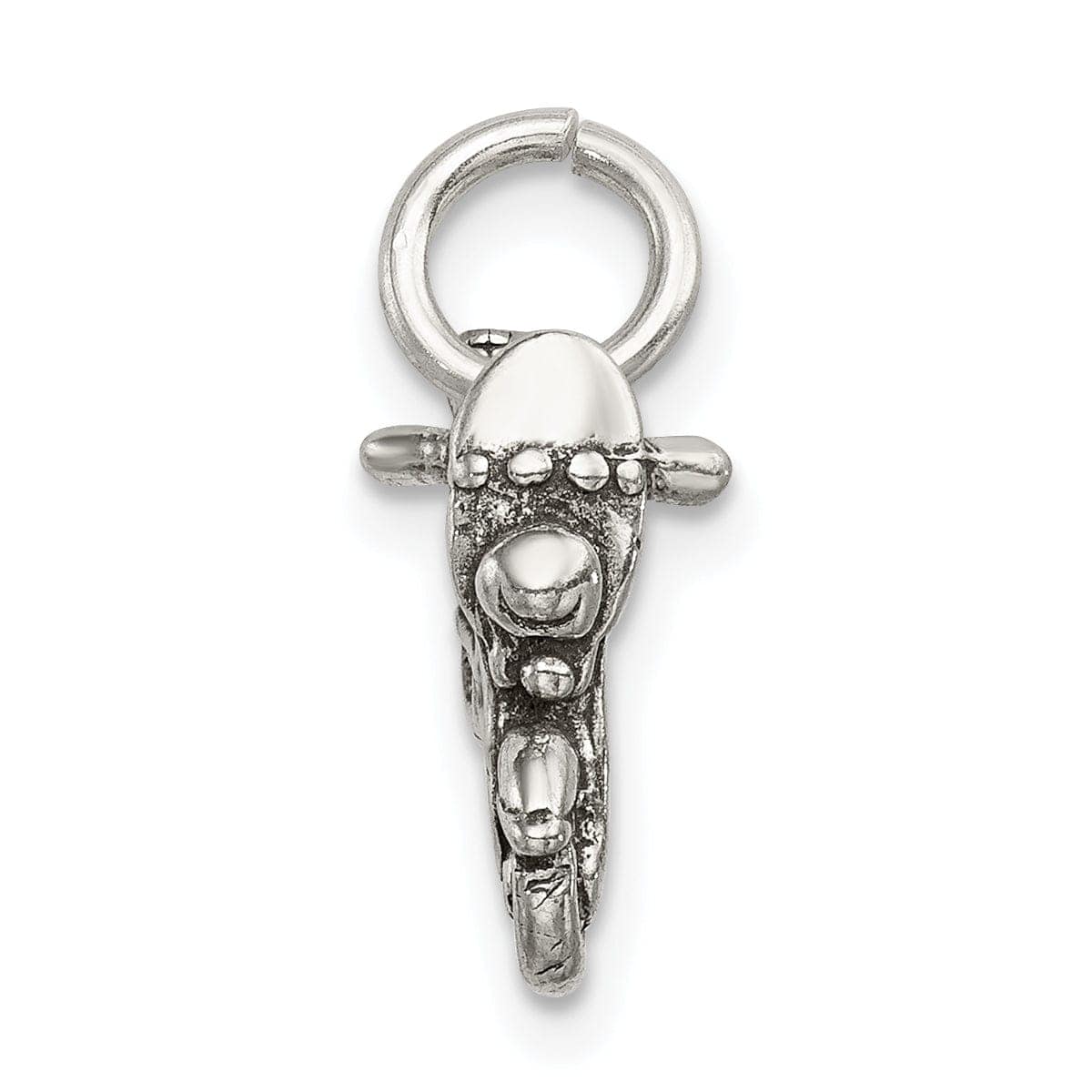 Add this Solid Sterling Silver Antiqued 3 Dimensional Motorcycle Charm Pendant to your jewelry collection today and ride in style. Perfect as a gift for yourself or for the motorcycle lover in your life, this pendant is a timeless piece that will be cherished for years to come. Order yours now and take your love for motorcycles to the next level.