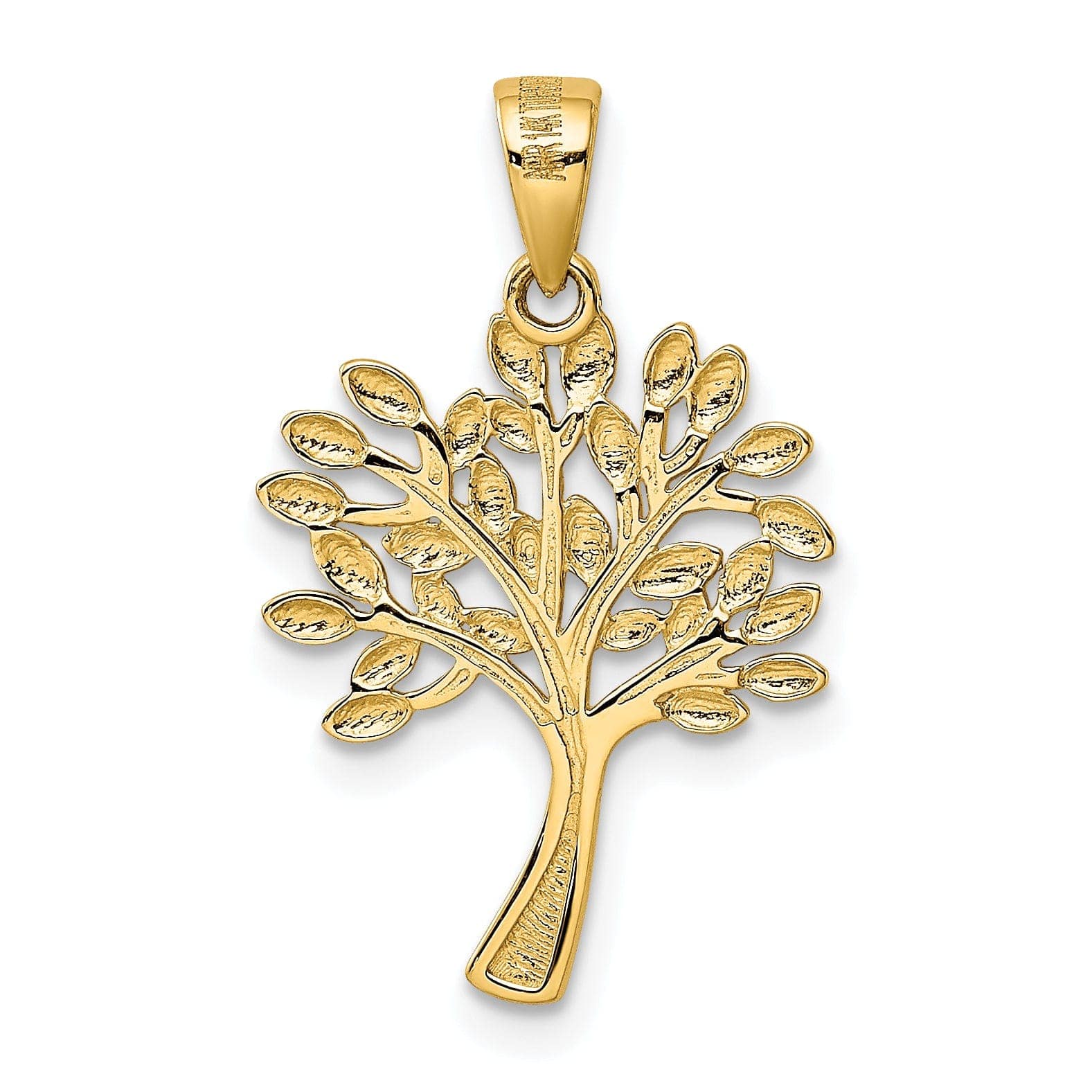 14K Yellow Gold White Rhodium Solid Polished Diamond Cut Finish Tree Design Charm Pendant