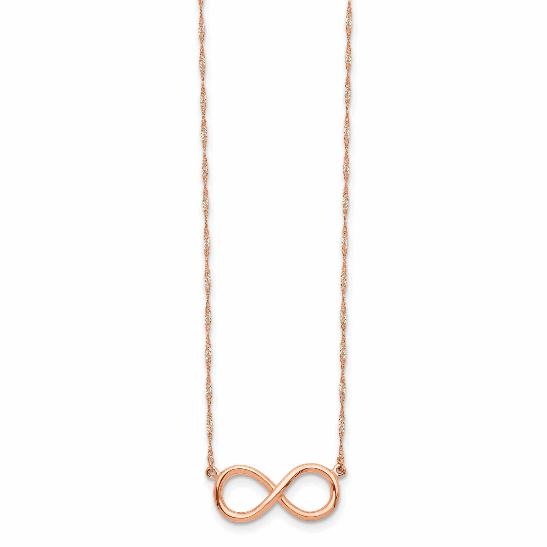 14K Rose Polished Finish Infinity Design Pendant in a 16.5-Inch Singapore Chain Necklace Set